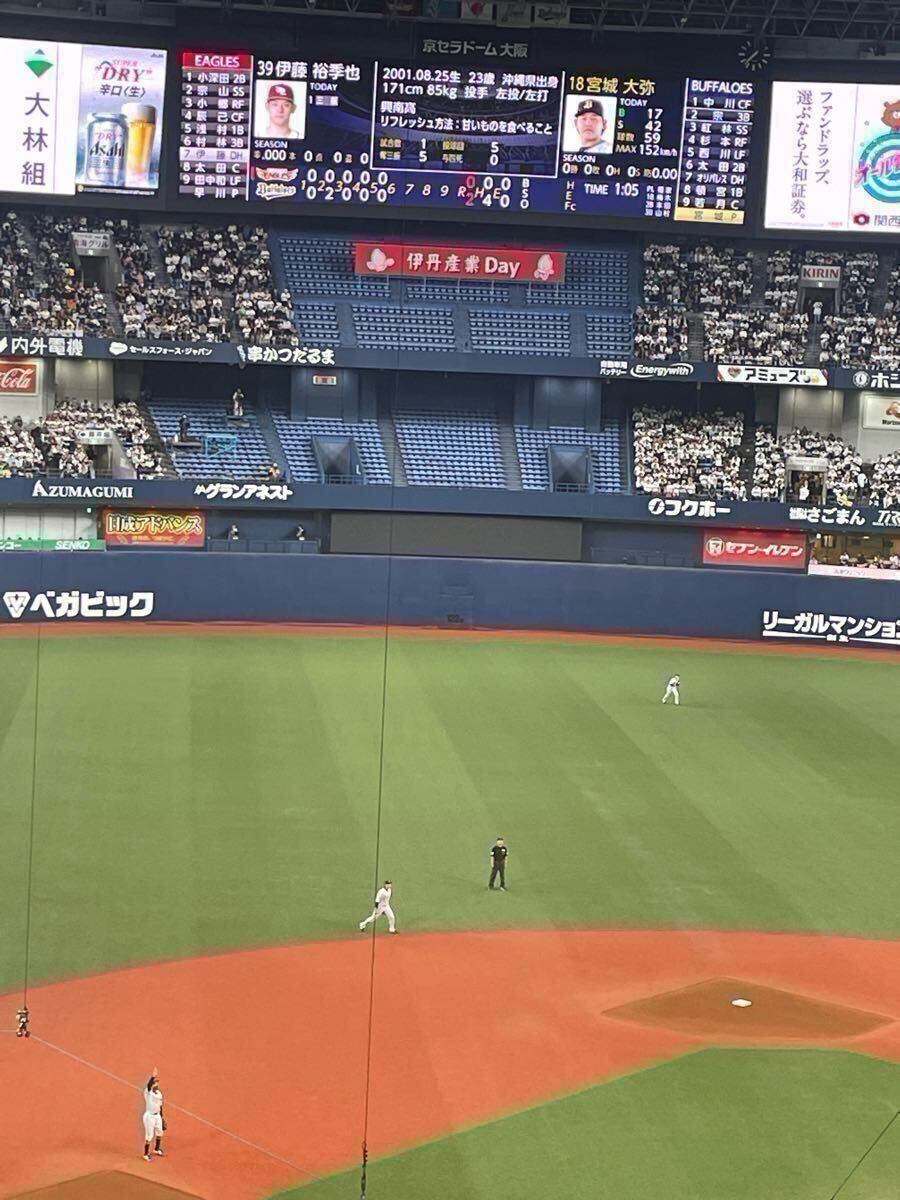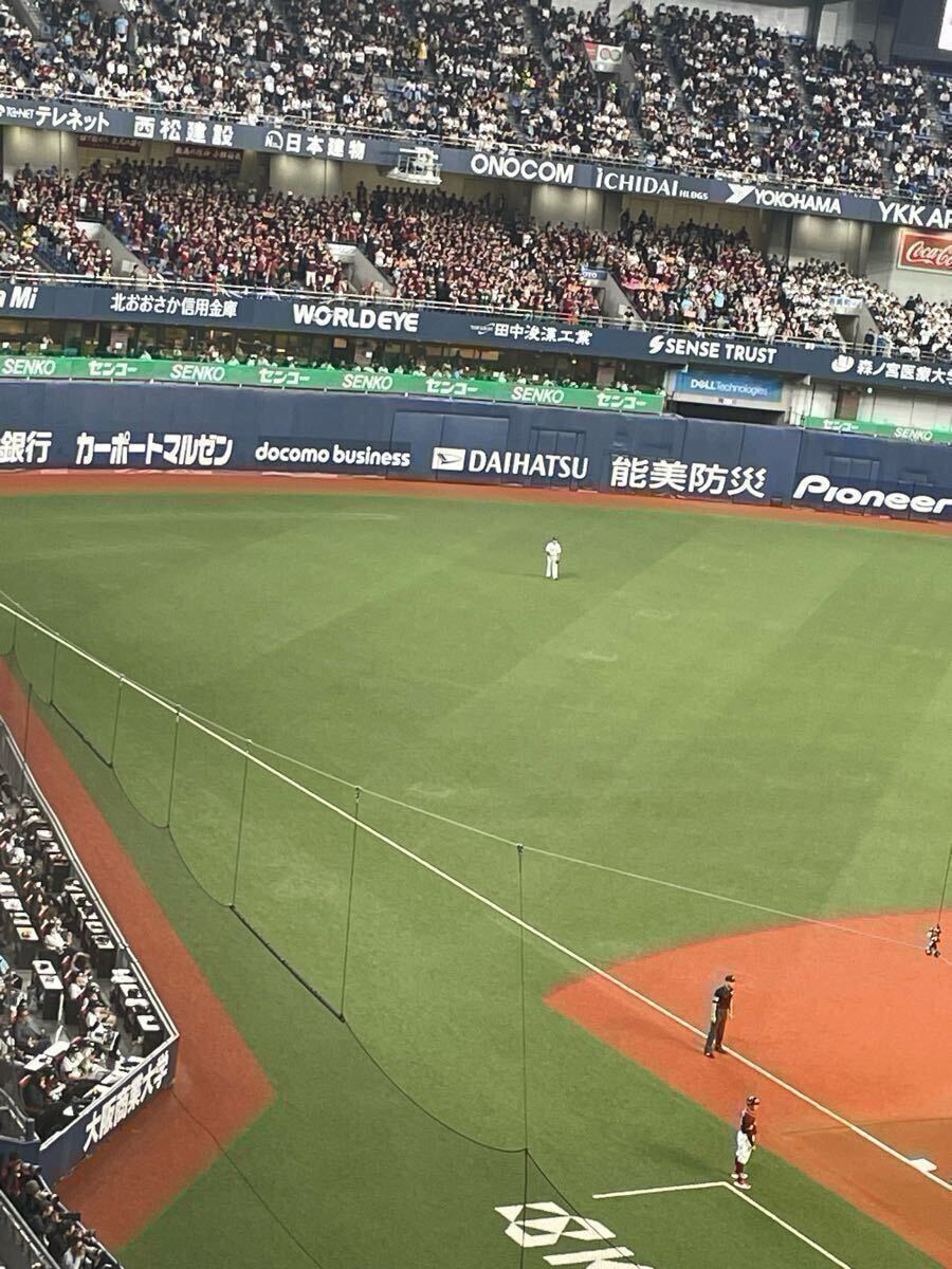 座席は、上段ネット裏、やや3塁より7列20番台です。