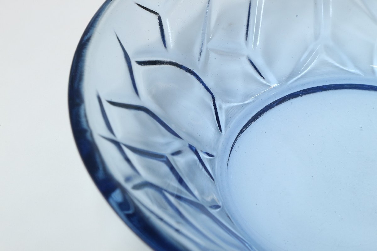 | ・昭和レトロ ウランガラス 青 硝子鉢 /硝子細工 ガラス工芸 菓子器 皿 プレス硝子 | ||||||||||
