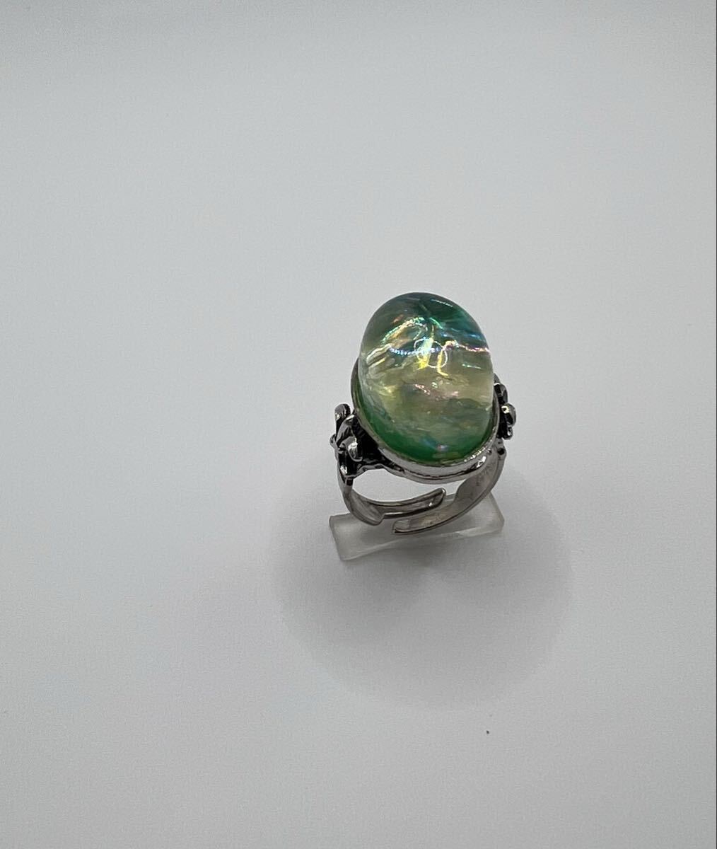 年代物アンティークジュエリーです。 大きさなど画像内メジャー参照。(調節可能・フリーサイズ) 注*オパール指輪のカテゴリーに出品しておりますが、 素人出品・未鑑定の為、材質は保証しておりません。
