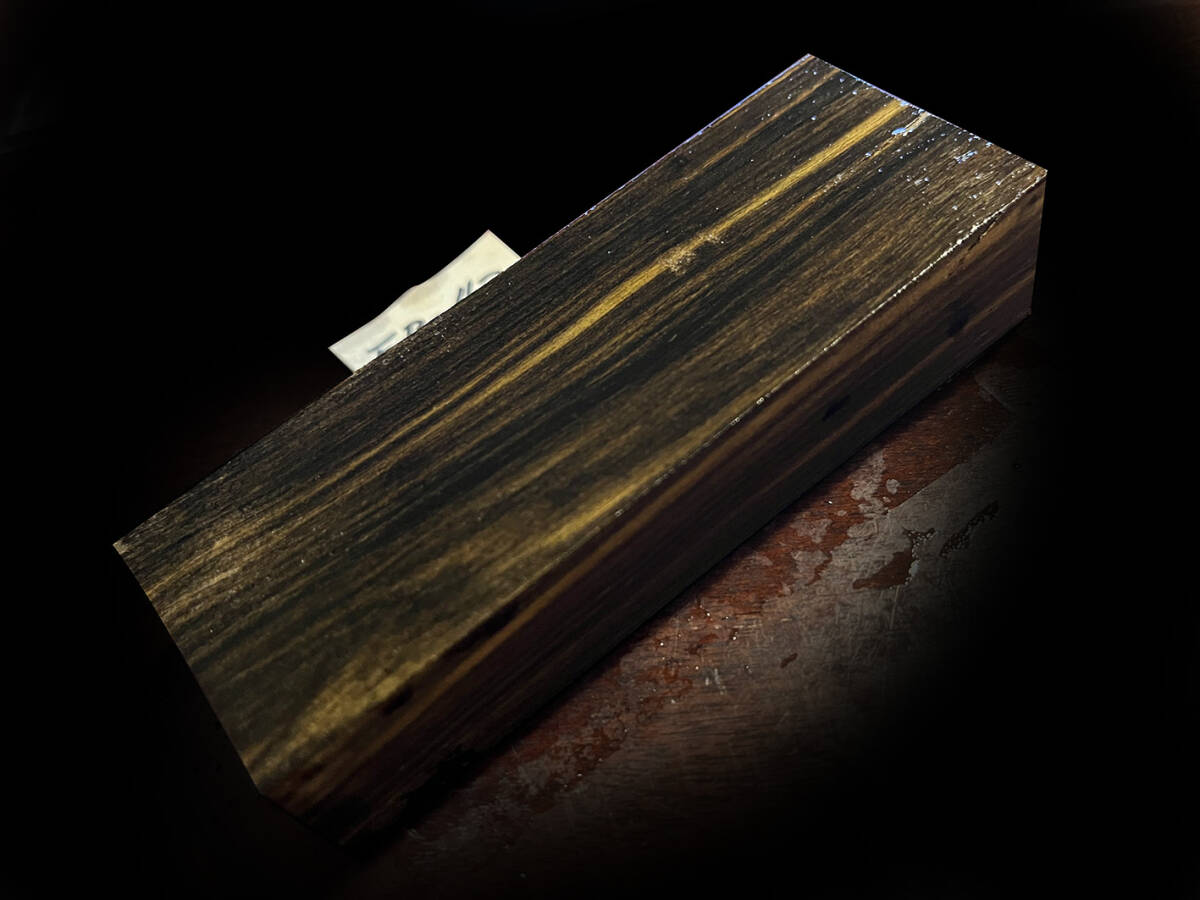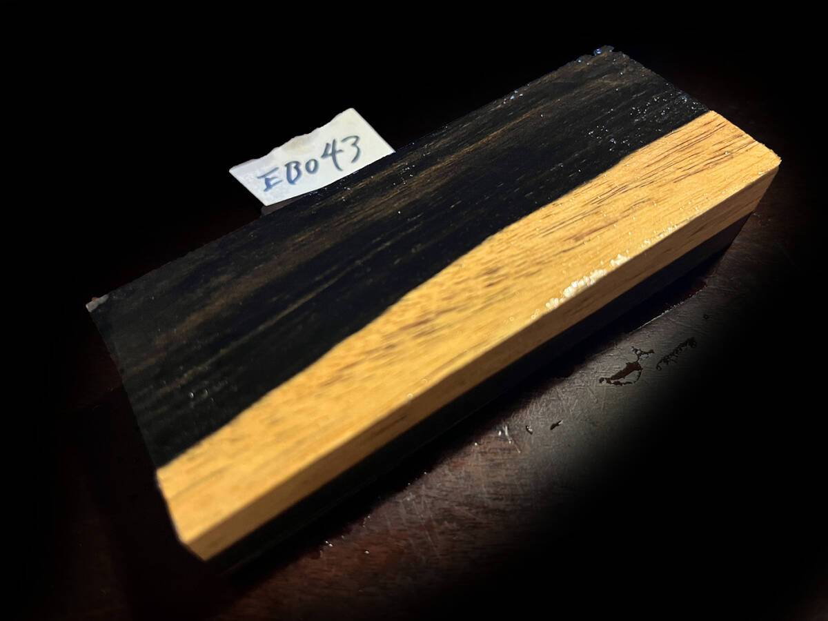 ごらんくださりありがとうございます。 こちらはエボニー(黒檀)の非常に珍しい杢材です。 エボニー(黒檀)は、カキノキ科の植物なので、 黒柿のクジャク杢の様な杢の材が、ごく稀に取れる事があります。 エボニー(黒檀)のクジャク杢は、 ダークグリーングレーのうねりのある杢や、黒・ブラウン・白のカラーが入り混じったり、 縮杢が出たりと物凄い変化に富んだ材です。 加工後の質感も黒檀なので高級感のある緻密な仕上がりになります。 本当に美しく、殆ど市場に出ることは無い部位の材です。 最上級の工芸品などにいかがでしょうか。 【サイズについて】 長さ 約105mm 幅 約40mm 厚み 約19mm ※多少の誤差はご容赦ください 【コンディションについて】 ※画像はバールの状態がよくわかる様に水引きをして撮影しています。 ※細かいヒビや色、模様を画像でよく確認してから納得の上ご入札を、お願いいたします。 ※お使いのPC環境、携帯端末によって色合いが異なる事がありますのを ご了承の上入札をお願いいたします。