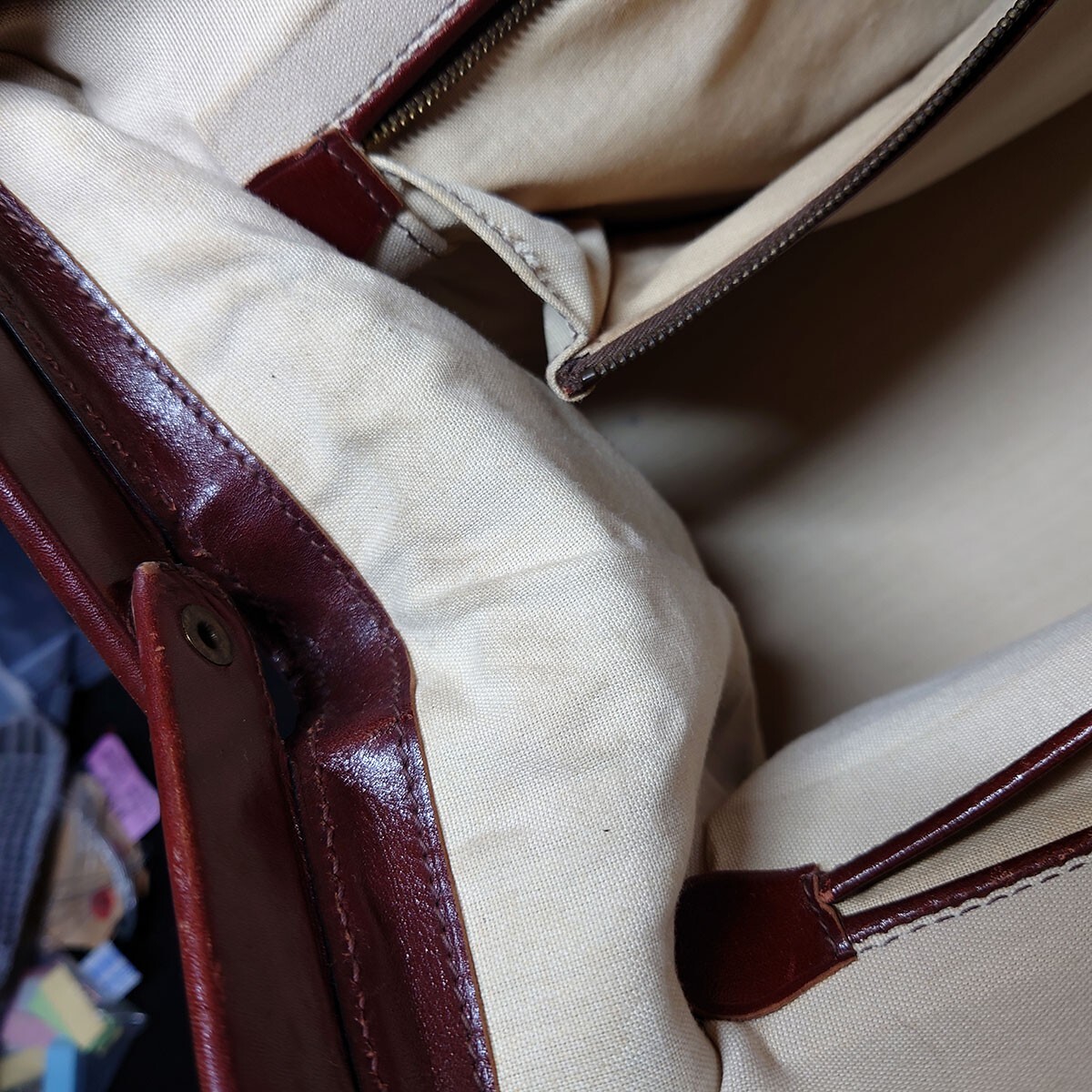 中は布地で、多少シミやカビ臭があります。何度か半日陰干しをし、表皮はラナパーで手入れしました。