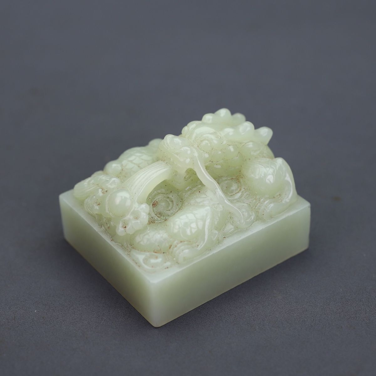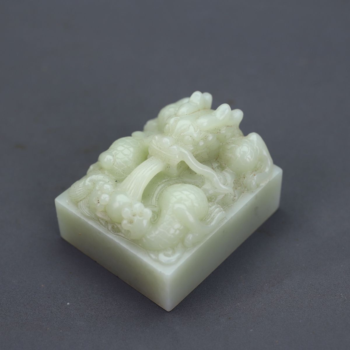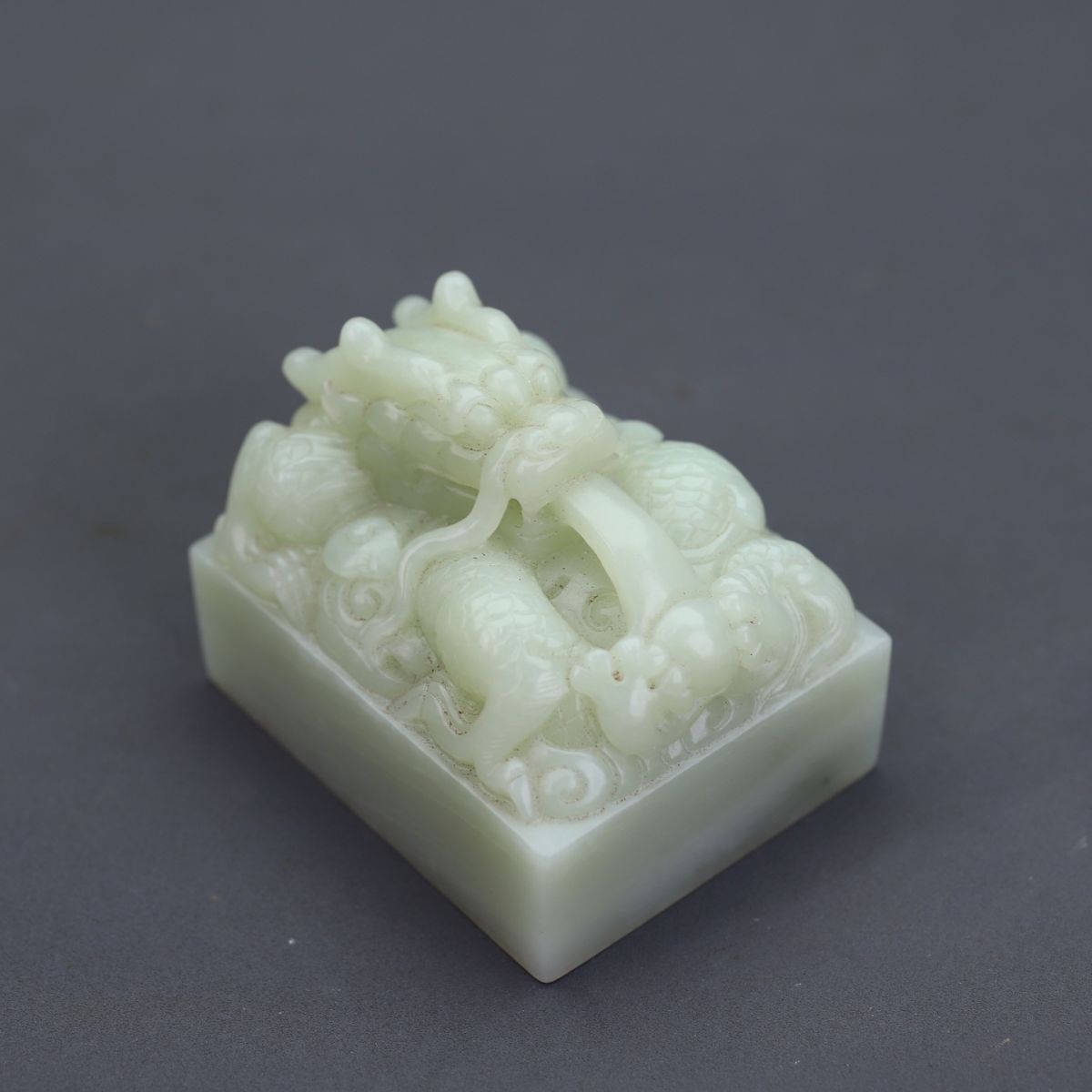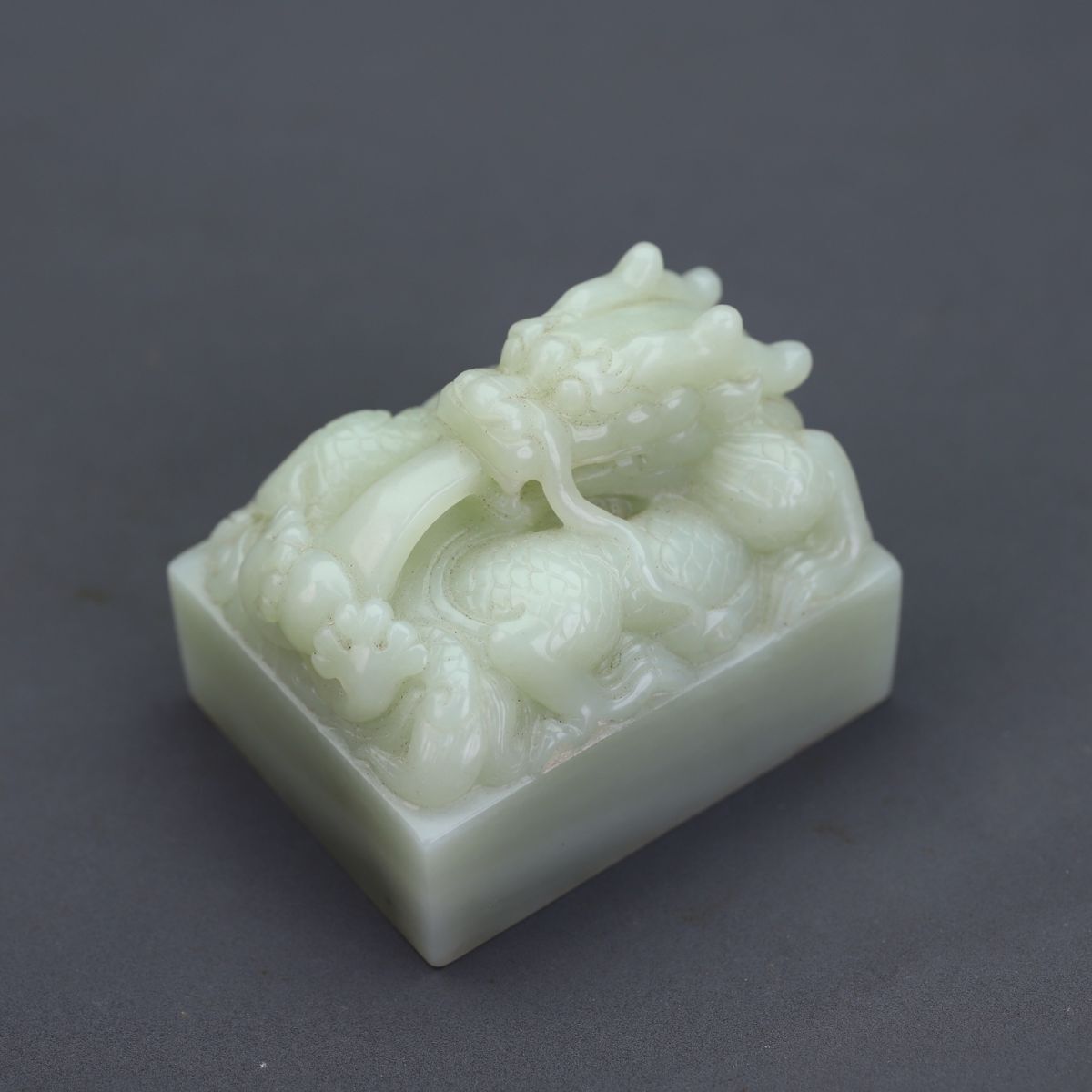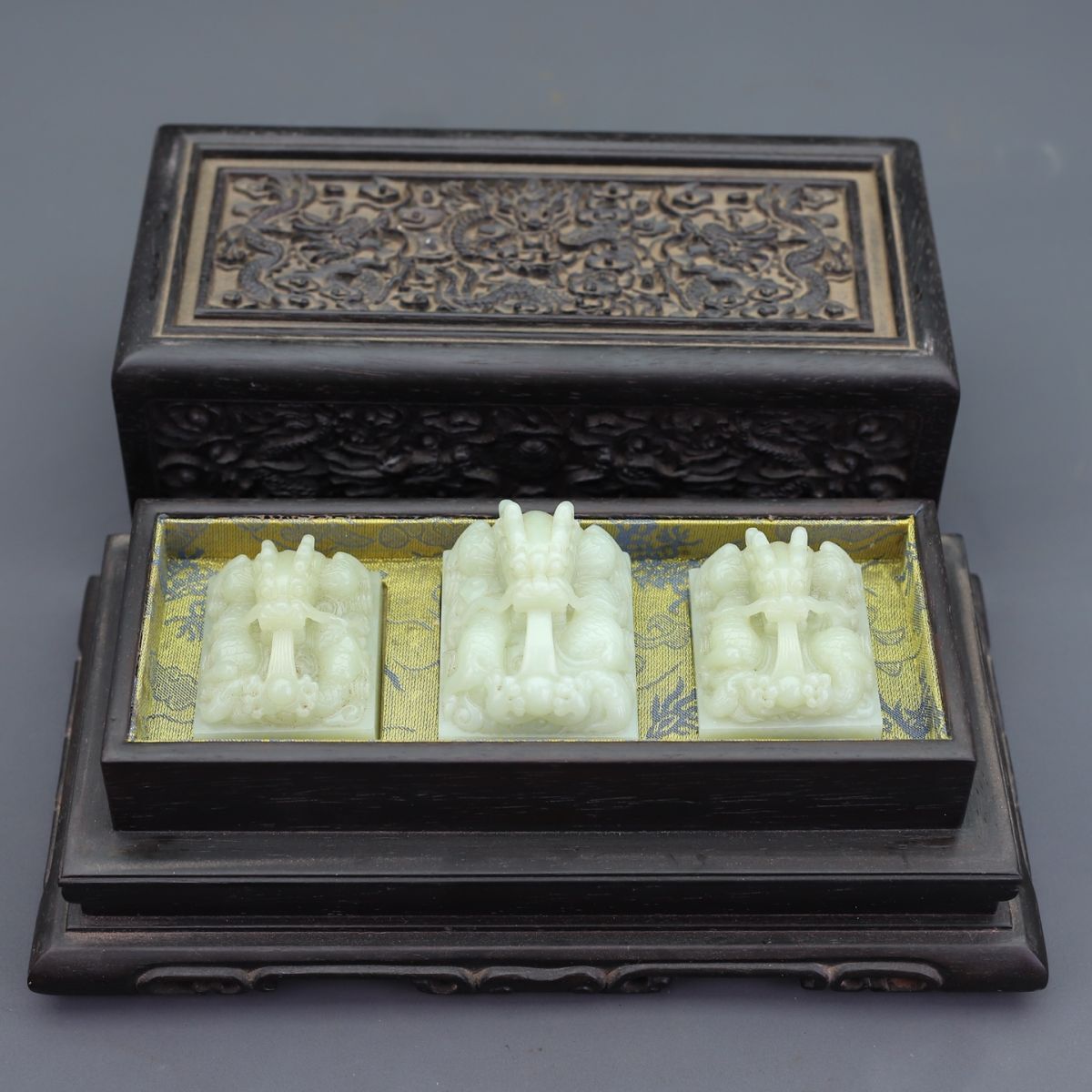 永し 清時代 乾隆年製 和田玉彫 盤龍鈕彫 印章 檀木盒 極細工 置物擺件 古美術品 時代物 古董品 収集 旧家蔵出 中国唐物 600g
