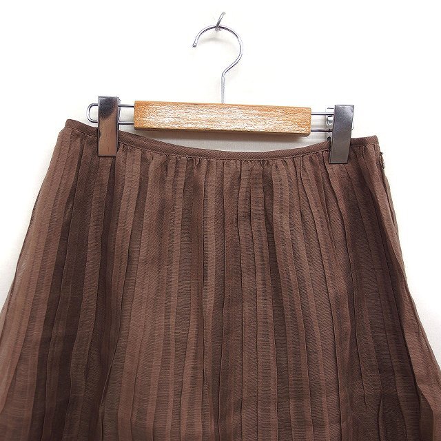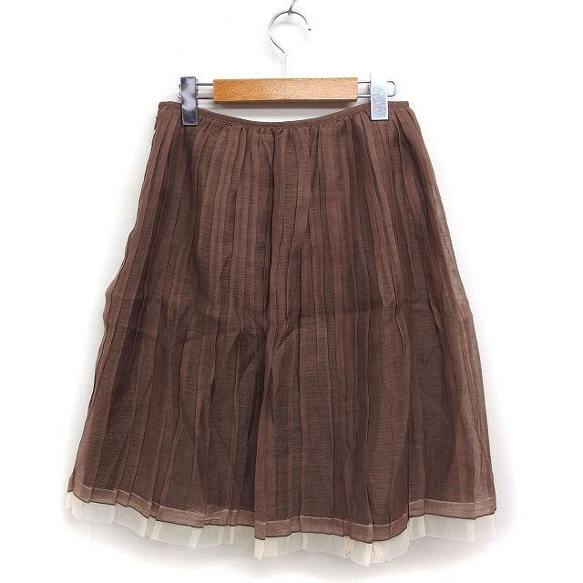 アナイ ANAYI プリーツスカート ひざ丈 素材切替 無地 リネン混 38 ブラウン 茶 /FT16 レディース