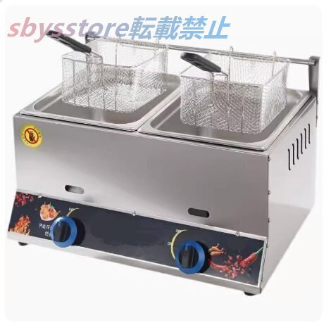 大型ガスフライヤー 8L+8Lダブルシリンダー フライヤー ステンレス鋼 揚げバスケット付き卓上フライヤー厨房機器 温度調整機能 LPガス用