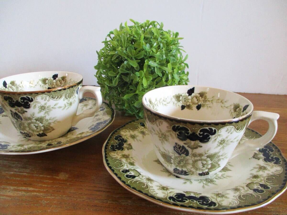 【美品・人気】ダブルフェニックス ニッコー 金彩牡丹 ペア カップ&ソーサー DOUBLE PHOENIX NIKKO JAPAN C&S 2客セット ゴージャス 花柄 | |||