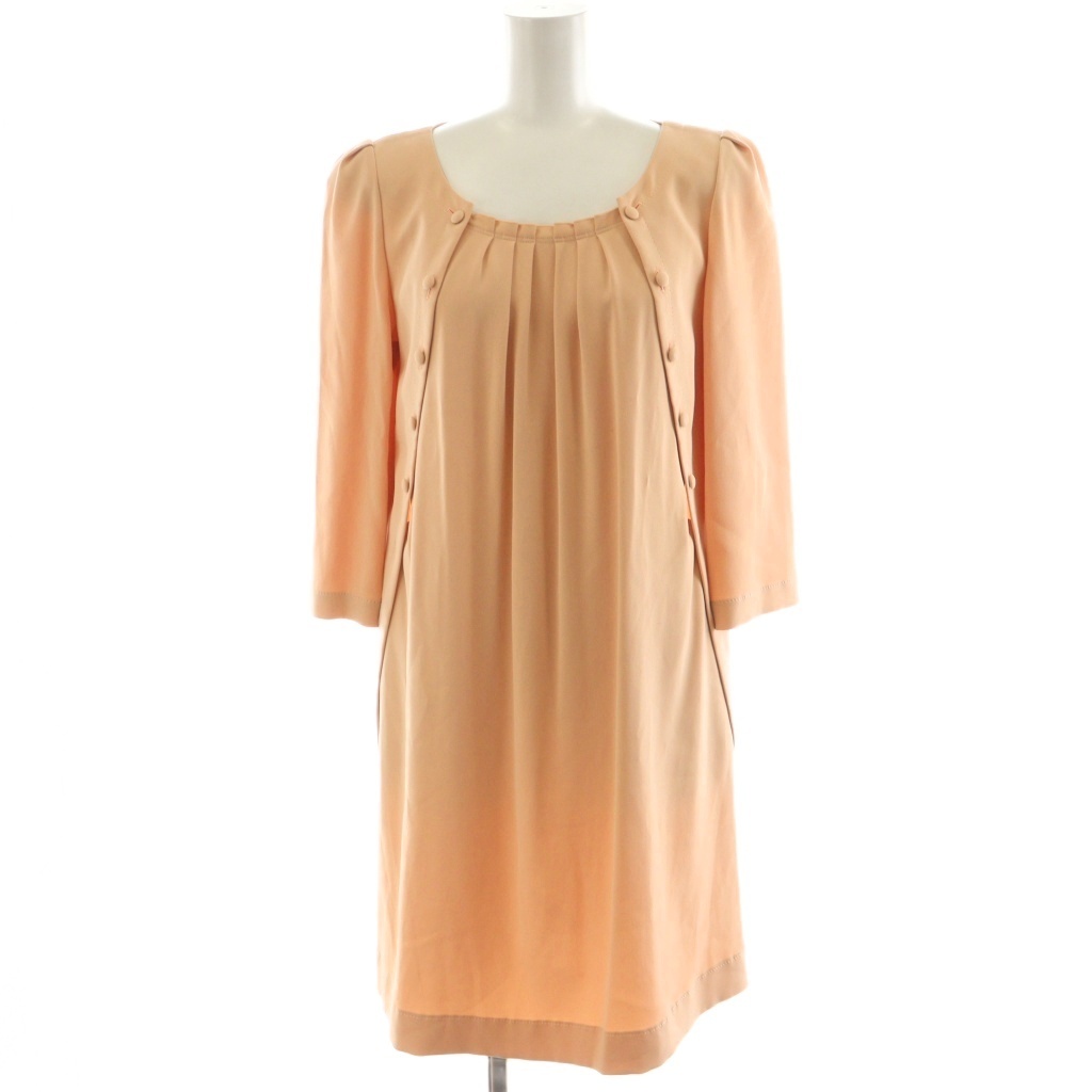 フォクシーニューヨーク FOXEY NEW YORK ワンピース ひざ丈 7分袖 38 ベージュ 30554 /AN41 レディース