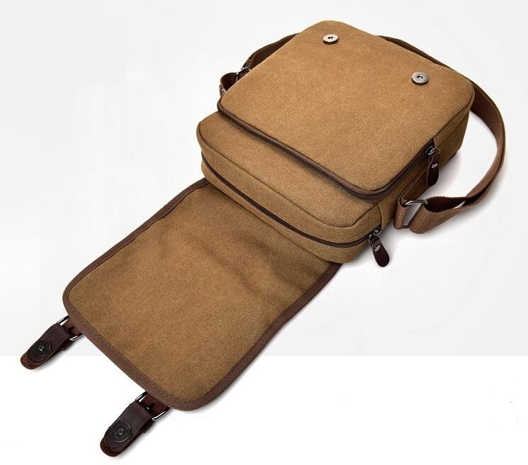 多機能 帆布 ショルダーバッグ メンズバッグ 斜めがけバッグ ビジネス 運動 帆布 無地 鞄 カバン カーキ色