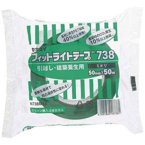 ・緑 50mmx50m N738M14・・Color:緑PatternName:N738M14・原産国:日本・グリーン購入法適合商品です。・テープのタテ糸に再生PET繊維を使用しています。・焼却処分時のCO2排出量を10%以上削減。(当社従来品比較)・廃棄時に小さくまとめられ、減容化を実現商品紹介 粘着力(N/10mm):2.2 タック(ボールNo.)16 引張強度(N/10mm):40 伸度(%):25 人体(皮膚)に直接貼らないでください。 張る面のほこり、油分・水分などをよく拭き取ってからご使用ください。 白木等のムク材・大理石等の石材・塩ビ素材への使用は避けてください。 その他の素材に関しては、貼る面の材質(天然素材など)や、 表面状態(表面強度の弱いもの)によって、糊残り、変色や貼り付け面をいためることがあります。