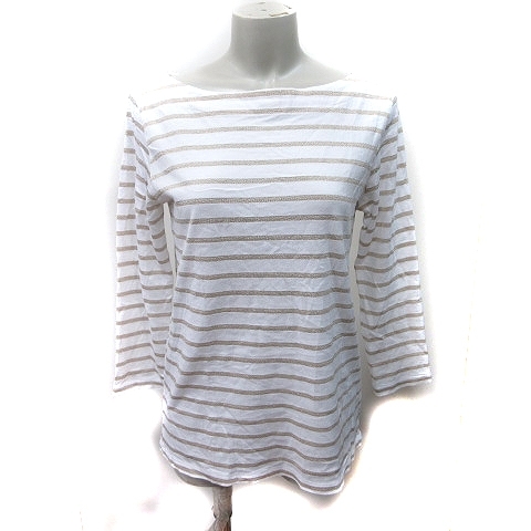 マカフィー MACPHEE トゥモローランド カットソー ボーダー 七分袖 2 M 白 ホワイト ベージュ /YI レディース