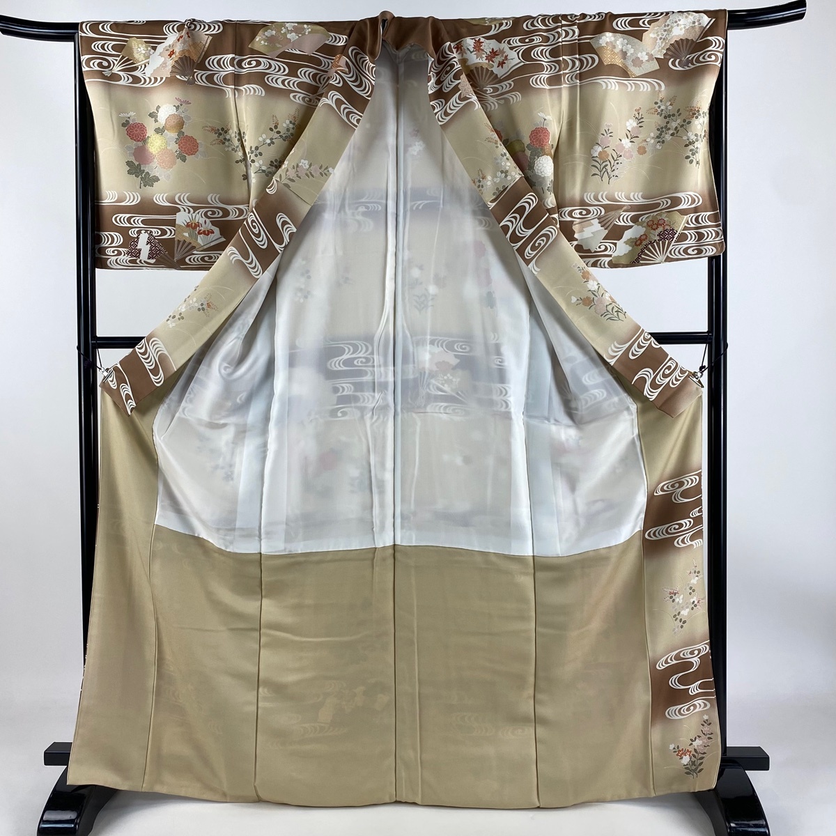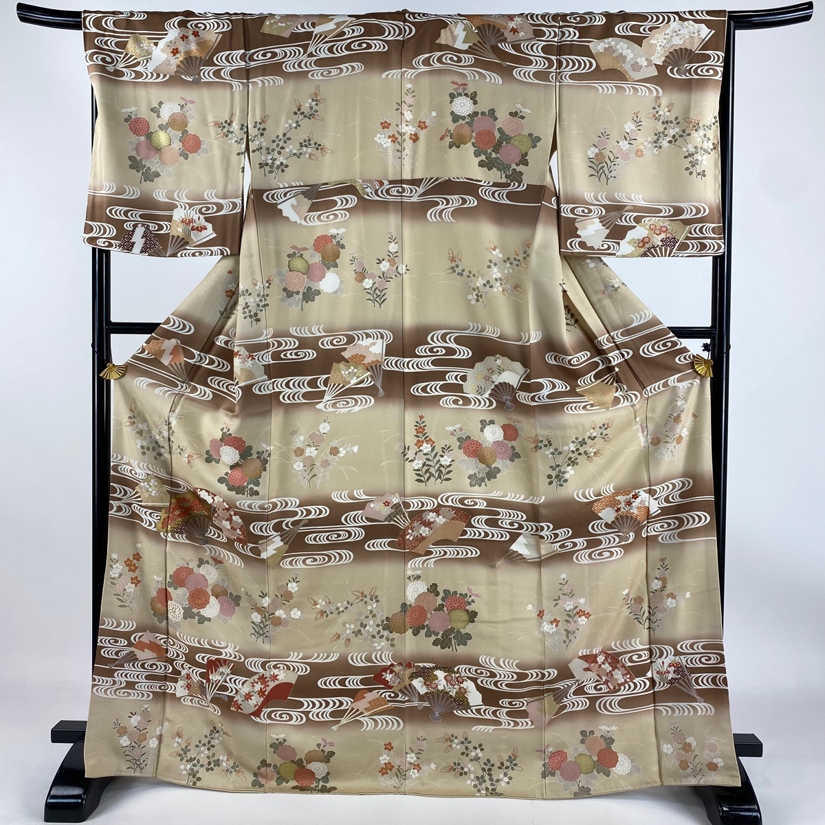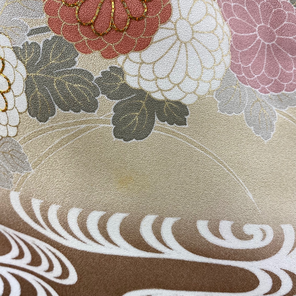 | 訪問着 逸品 扇 秋草 金糸 金彩 薄茶色 袷 身丈169 裄丈68 L 正絹 【中古】 |