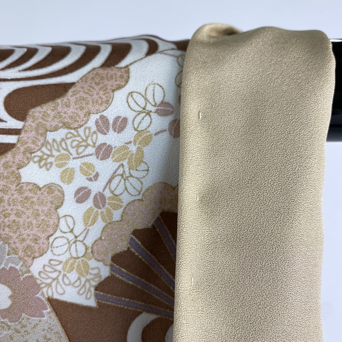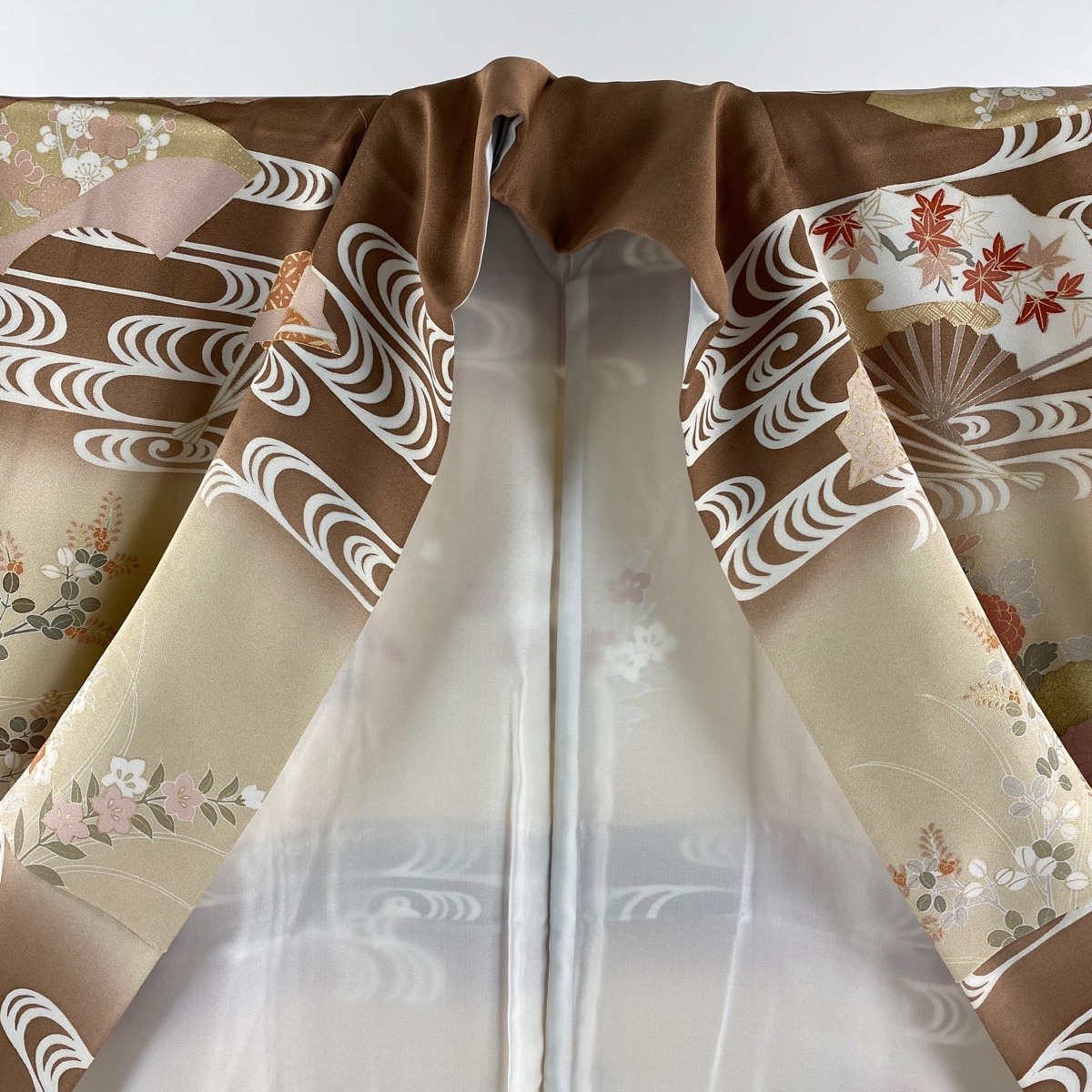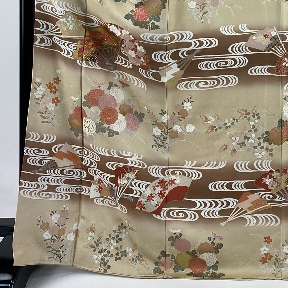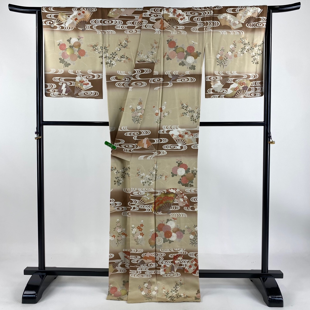 | 訪問着 逸品 扇 秋草 金糸 金彩 薄茶色 袷 身丈169 裄丈68 L 正絹 【中古】 |