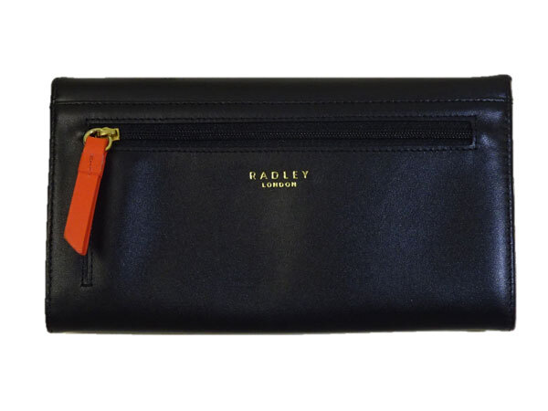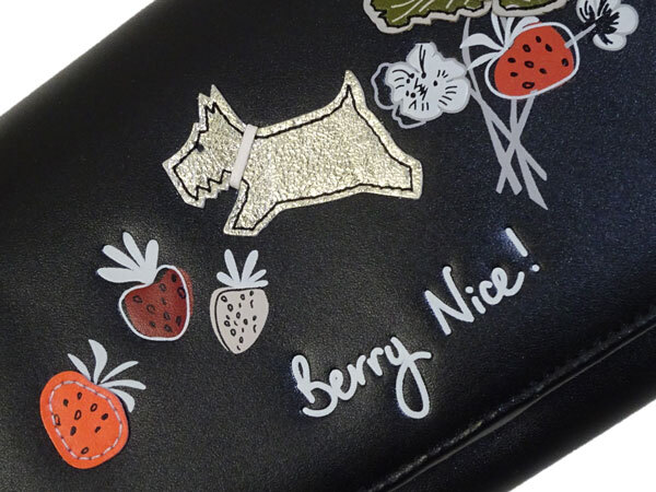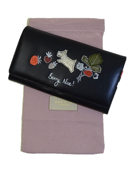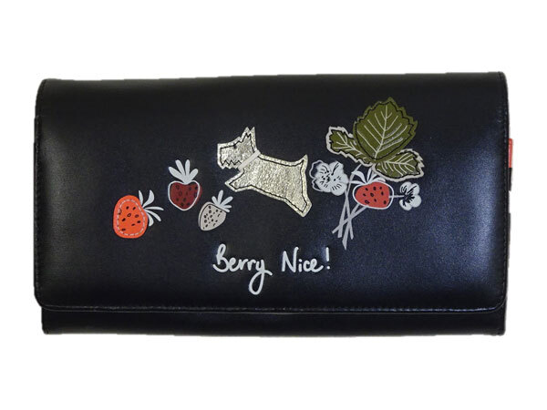 ベリーに囲まれたテリア犬がデザインされたラドリーのウォレット。中はオレンジとブラックの対比が目を惹く品です。