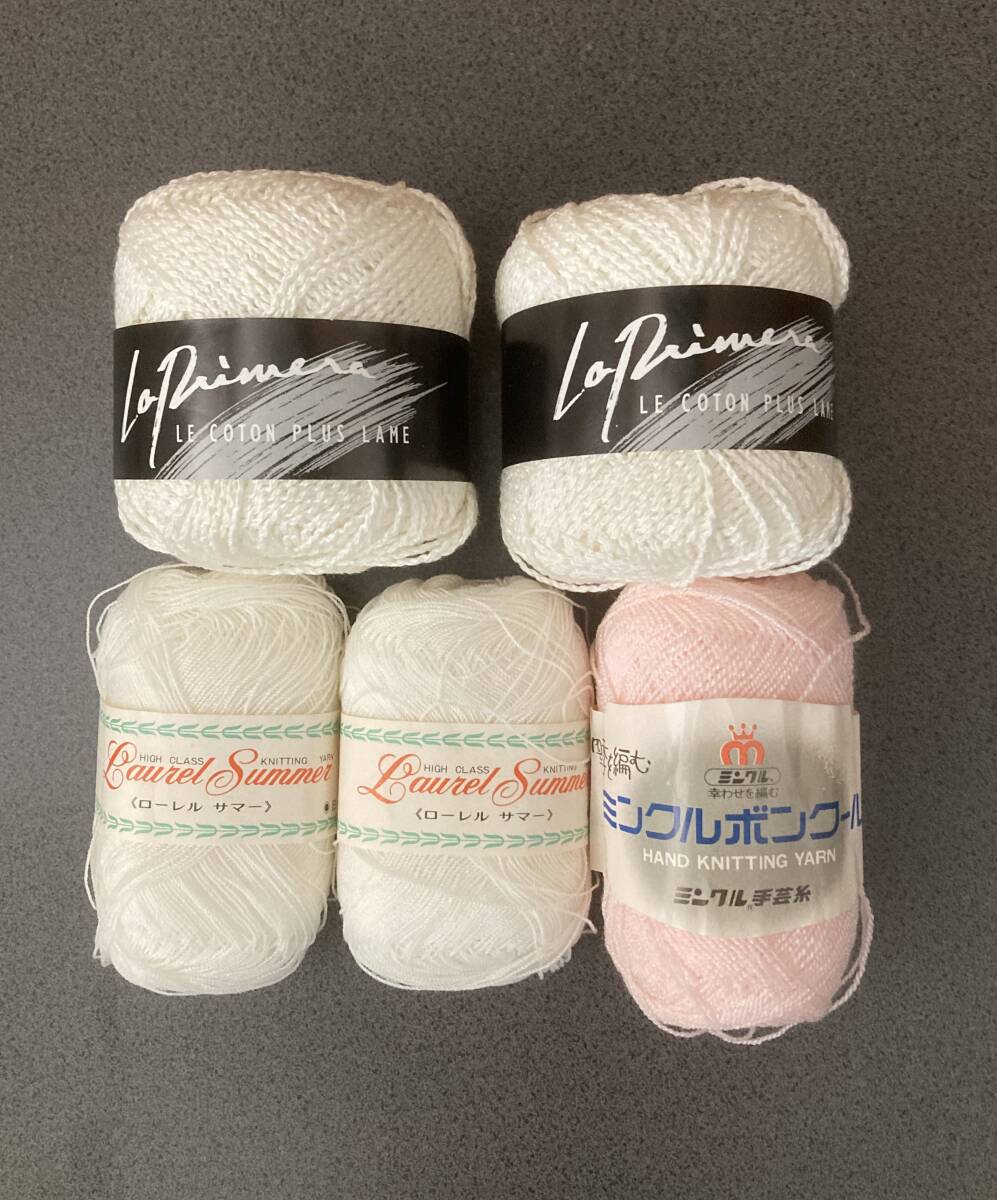 ◆未使用品◆毛糸◆ラ・プリメーラ(白ラメ)◆ローレル サマー◆ミンクルボンクール◆白/ピンク◆5個セット◆