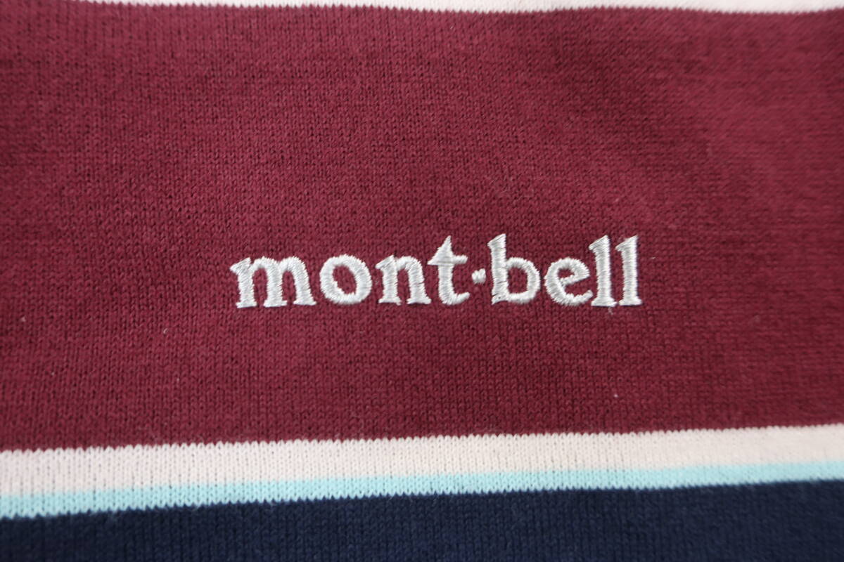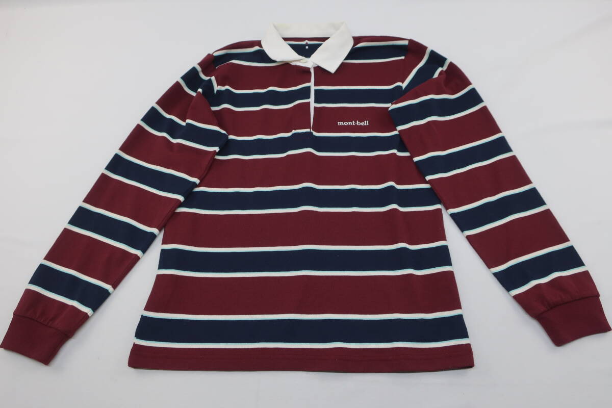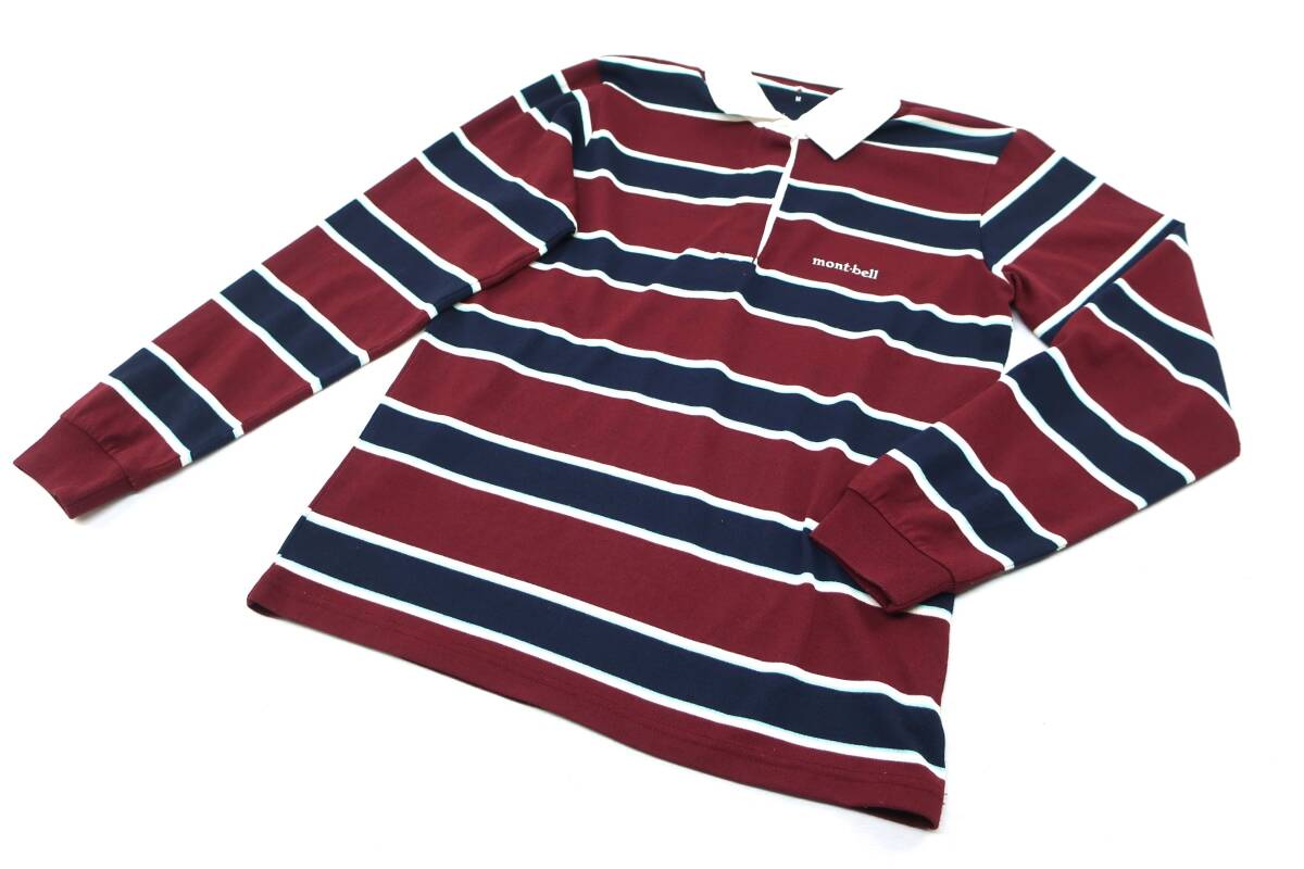 【送900円】647 最終 mont-bell モンベル レディース 長袖ポロシャツ ボーダー ボルドー×ネイビー系 M ポリエステル100%