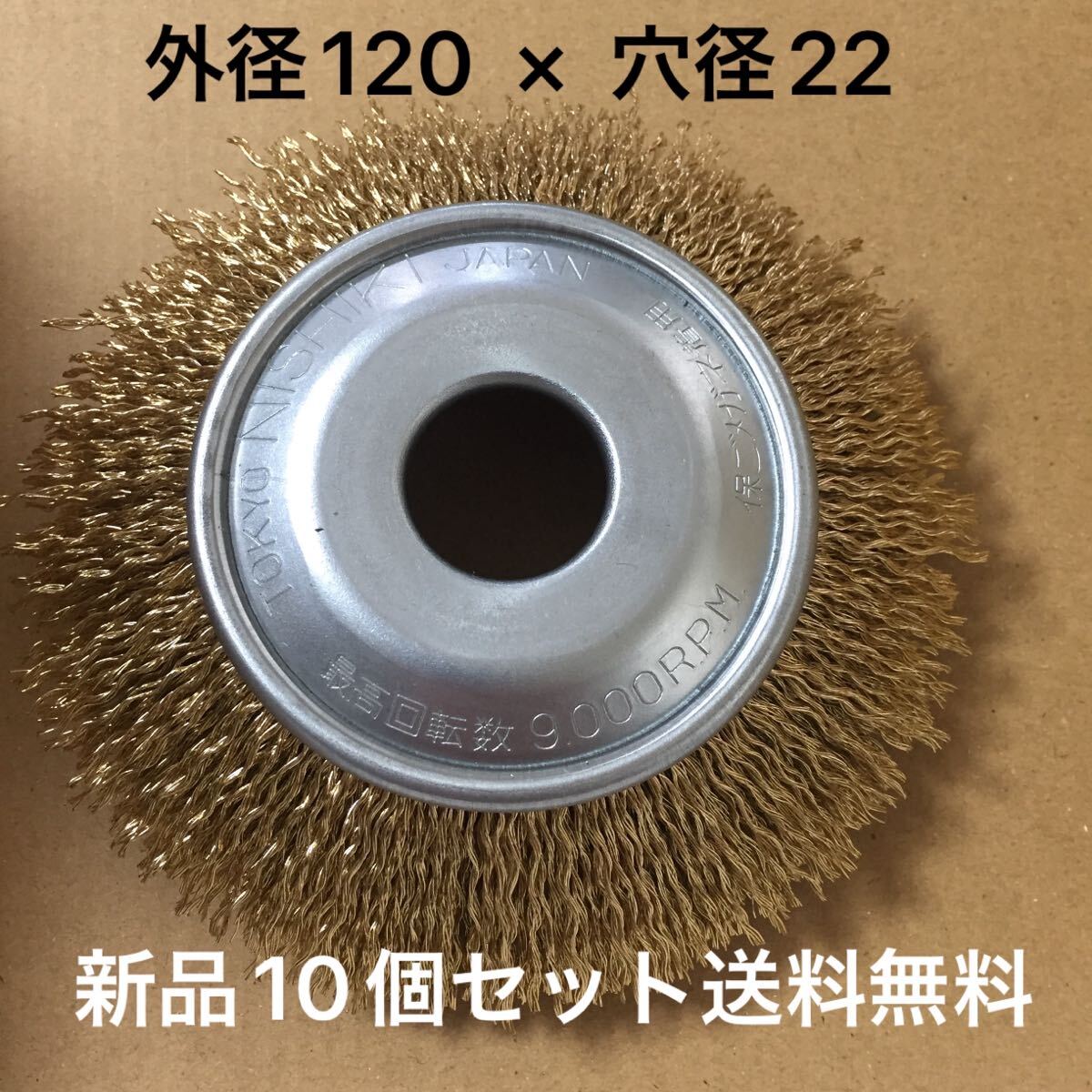 ワイヤー保護カバー付 ワイヤーベベルブラシ 外径120mm × 穴径22mm 10個セット です。