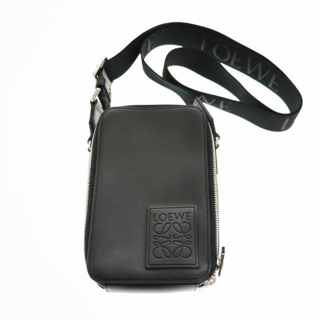 ロエベ LOEWE Vertical Crossbody Pocket サテンカーフ バーティカル クロスボディポケット ショルダーバッグ C565S59X01 黒 ブラック ☆AA★ 250816