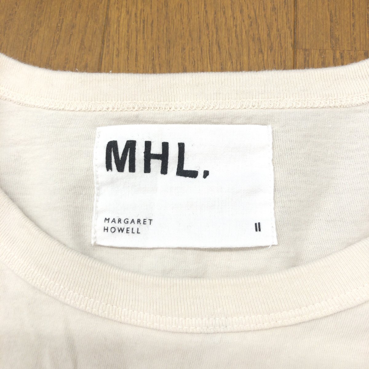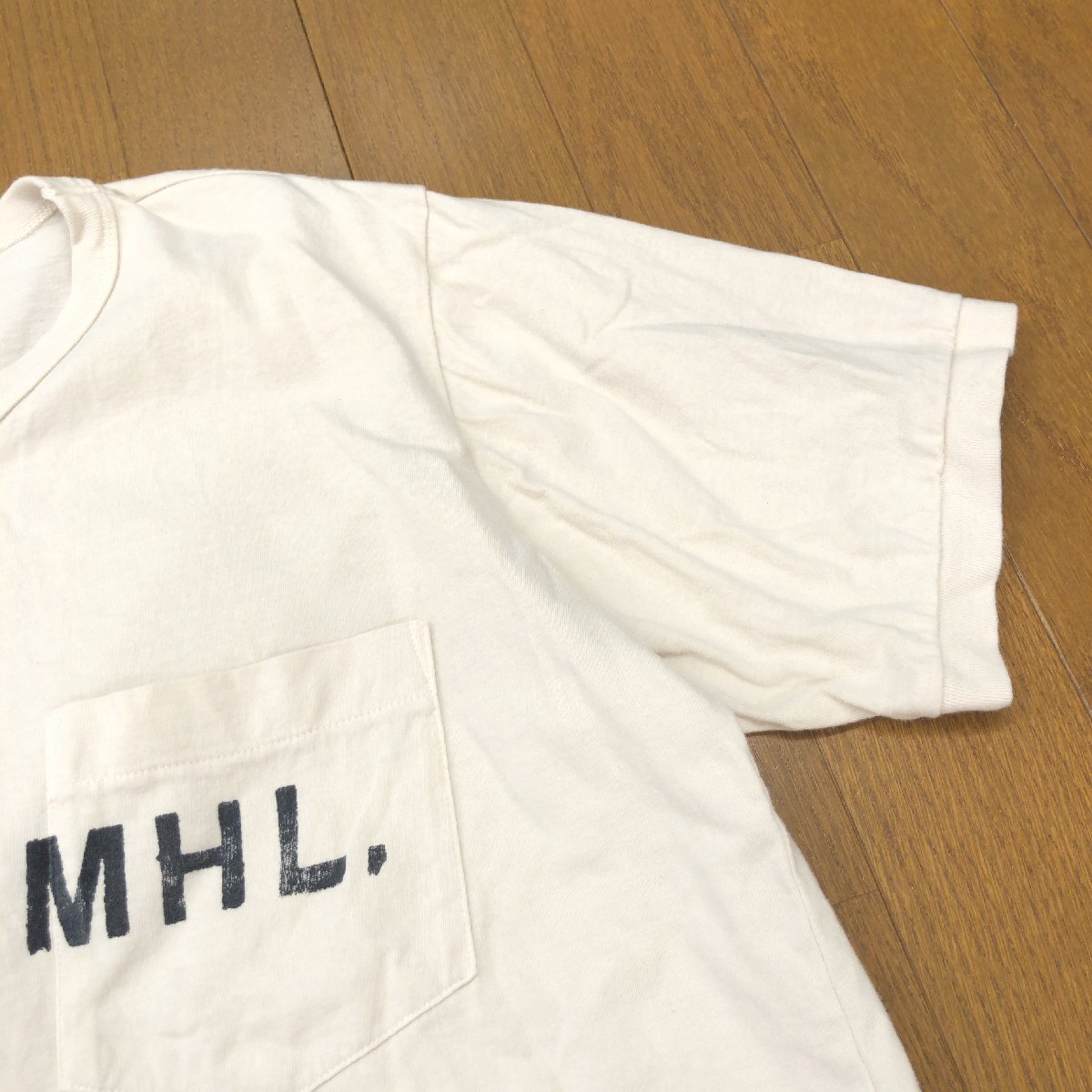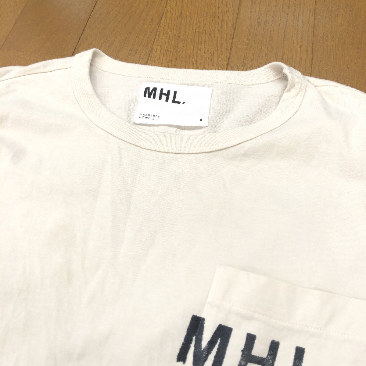 MHL. マーガレットハウエル コットン100% ロゴプリント ショートスリーブ Tシャツ 2(M) ベージュ 日本製 カットソー ポケT 半袖 レディース