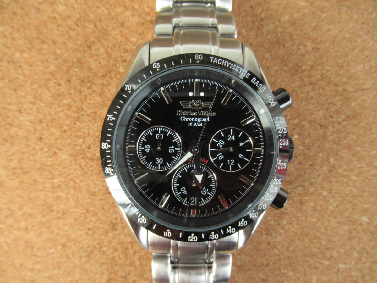 シャルル ボーゲル クロノグラフ VC-7971 外装分解洗浄済みの美品 電池交換済み 安心の日本メーカームーブ 激安 !!