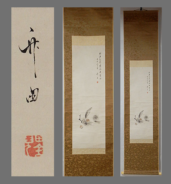 肉筆、真作保証。 作品に、時代感、シミ、汚れ、多数の強い折れ、巻きじわがあります。 表装に、時代感、多少のシミ、汚れ、折れ、巻きじわがあります。 表装裏側に、経年によるシミ、汚れ、スレてる箇所があります。 箱は二重箱で田能村直入の鑑定箱書きがあります。軸先にヒビがあります。 田能村竹田 略歴:美術評価額5300万(画)別号九畳仙吏、文晁門、 王淑明私淑「船窓小戯帖」没年天保6年、享年59歳。 田能村直入 略歴:美術評価額600万、京都府画学校長、画仙堂設立、別号小虎、 師田能村竹田・養子、山水他、大分、没年明治40年、享年94歳。 下記の真作保証について・注意事項をよくご覧の上、 お気に召された方に、お譲り致しますので、ご入札を宜しくお願い致します。 |