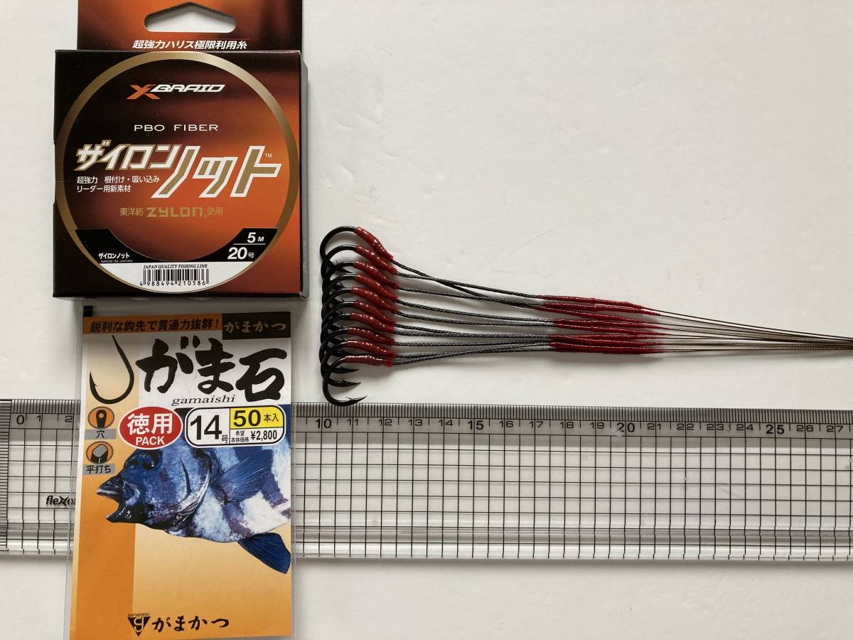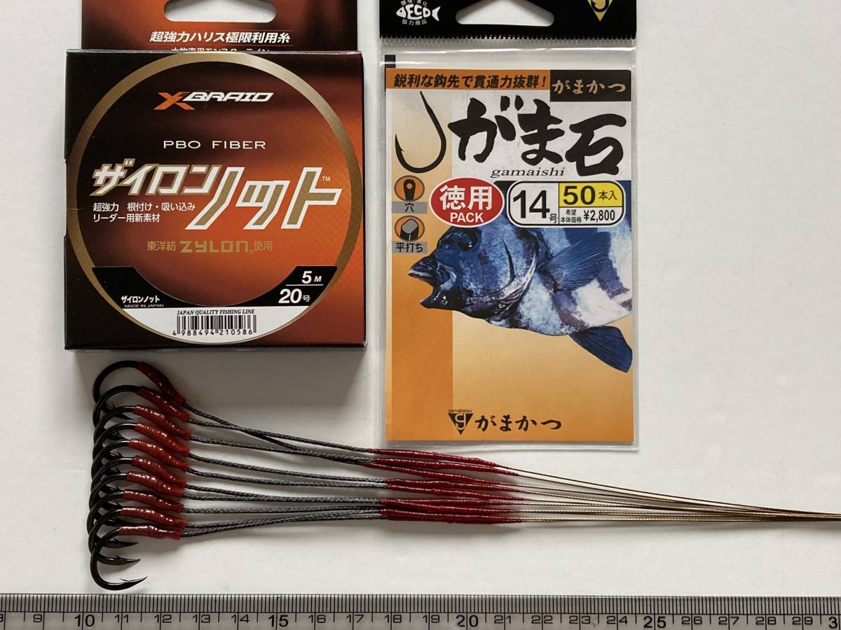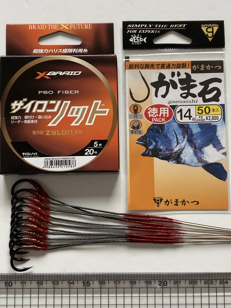 石鯛仕掛け がま石14号 ザイロンハリス 10本セット 送料込み 20kg強度耐久テスト合格品 №2853