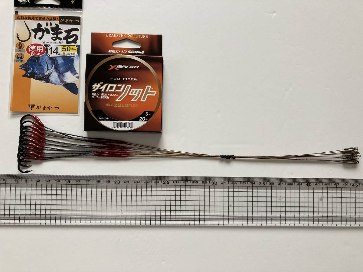 石鯛仕掛け がま石14号 ザイロンハリス 10本セット 送料込み 20kg強度耐久テスト合格品 №2853を出品します。