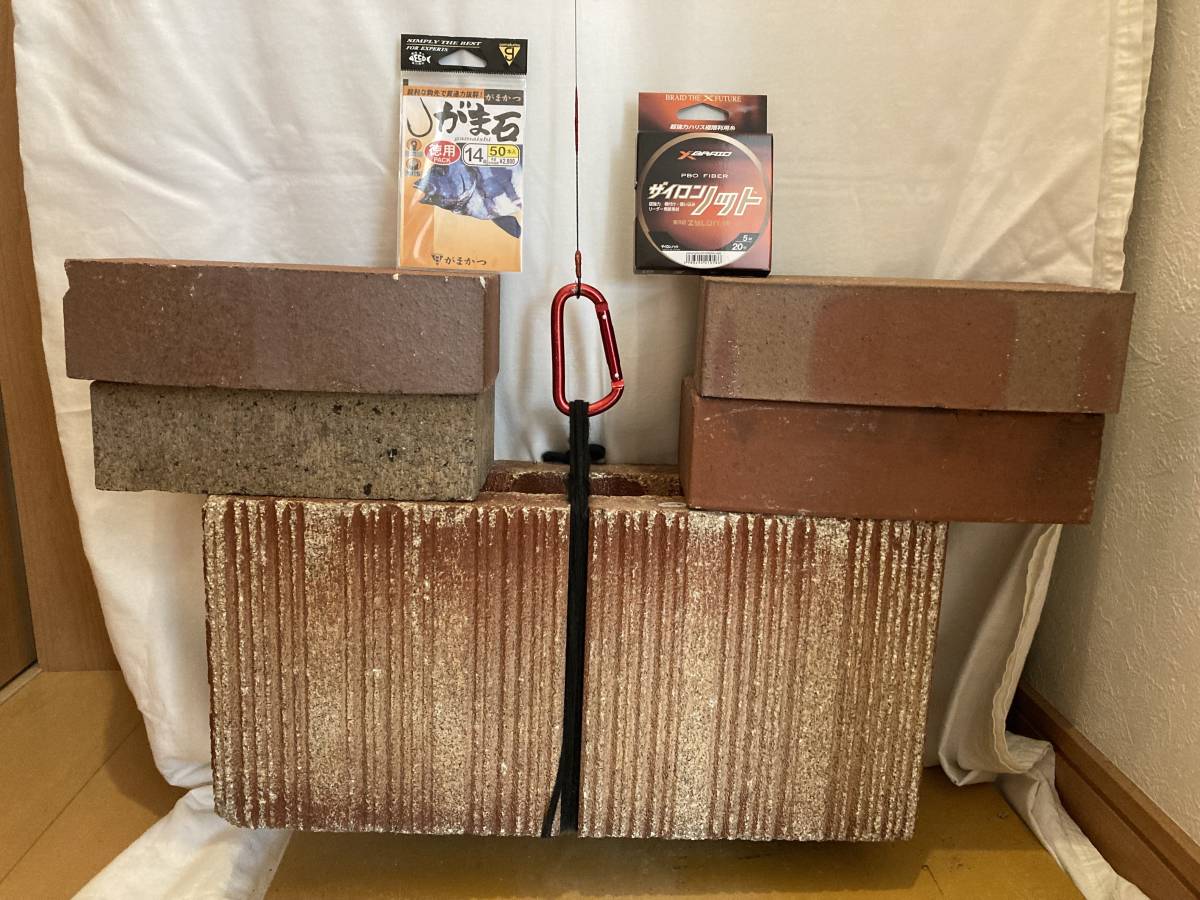 20kg強度耐久テスト実施(画像6.7.8.9.10.)、ブロック10kg+レンガ4個 10kg= 20kg