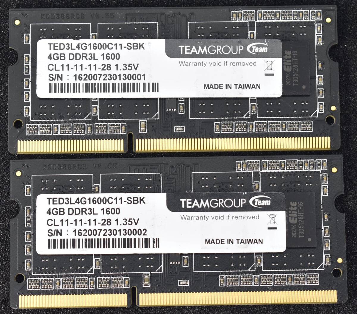 4GB 2枚組 (合計 8GB) PC3L-12800S DDR3-1600 S.O.DIMM 204pin 1Rx8 TEAMGROUP (動作確認済) (管:EN71 x1s