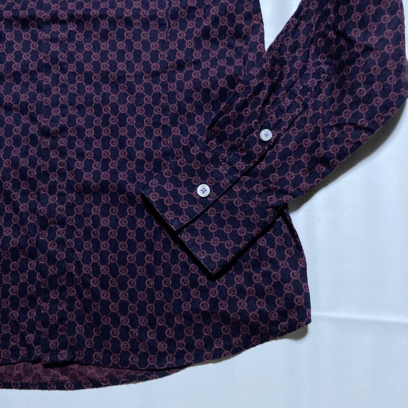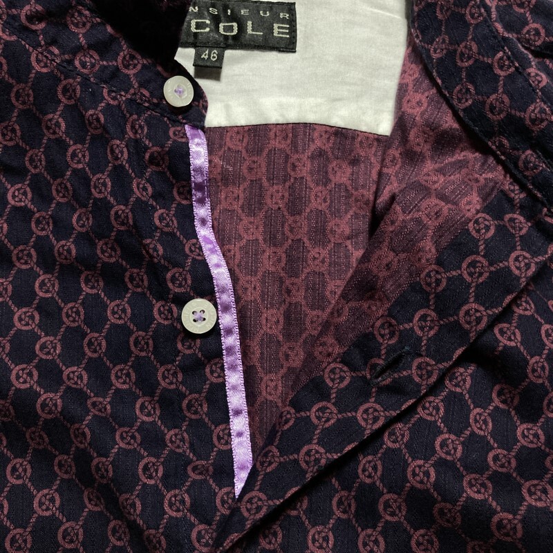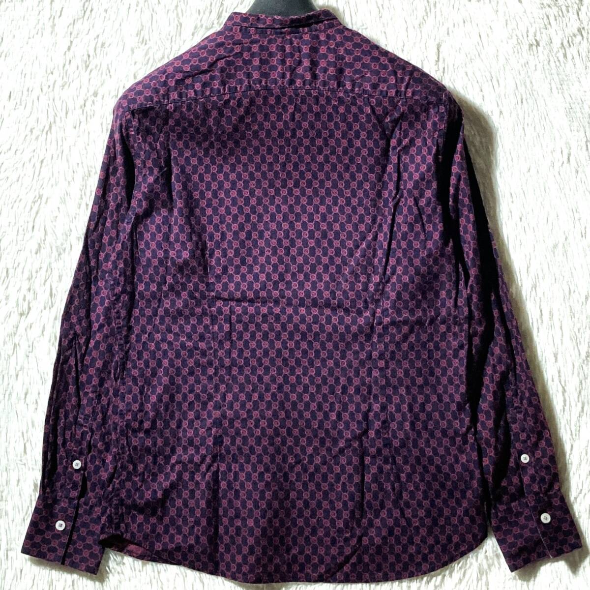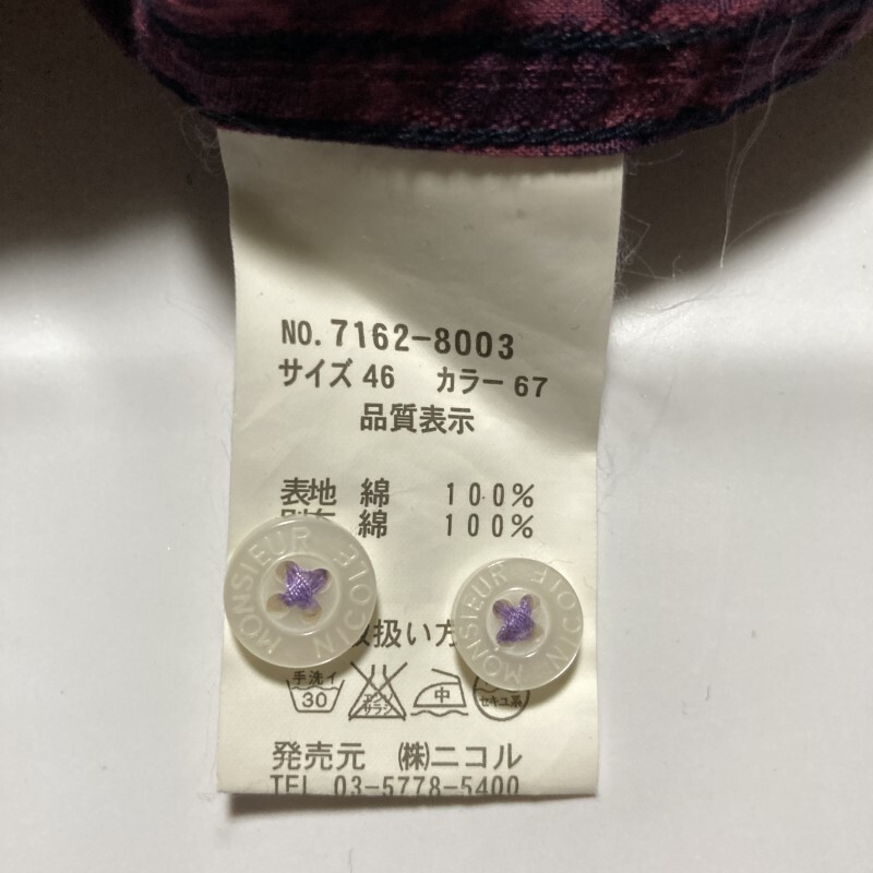 ムッシュニコル★美ライン&クール優雅★ロープ チェーン柄 長袖シャツ 比翼 上品パイピング 薄手 紺×紫 46 MONSIEUR NICOLE