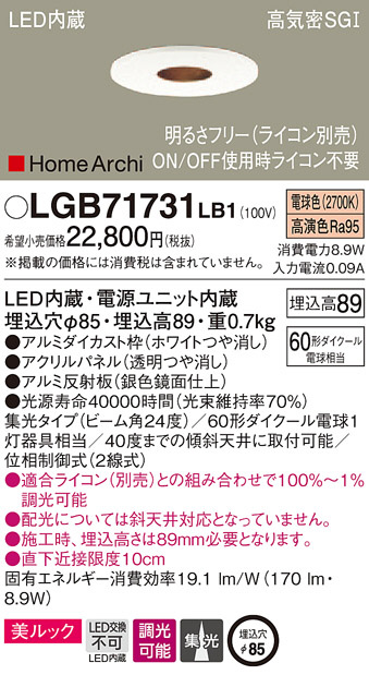 Panasonic DAIKO LEDダウンライト 6種19台セット