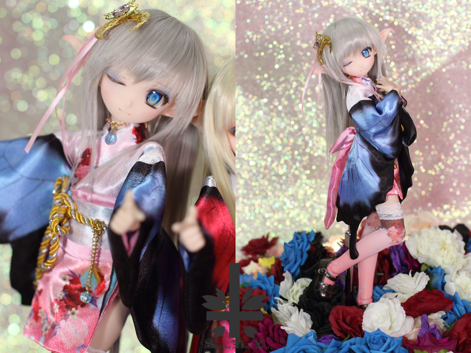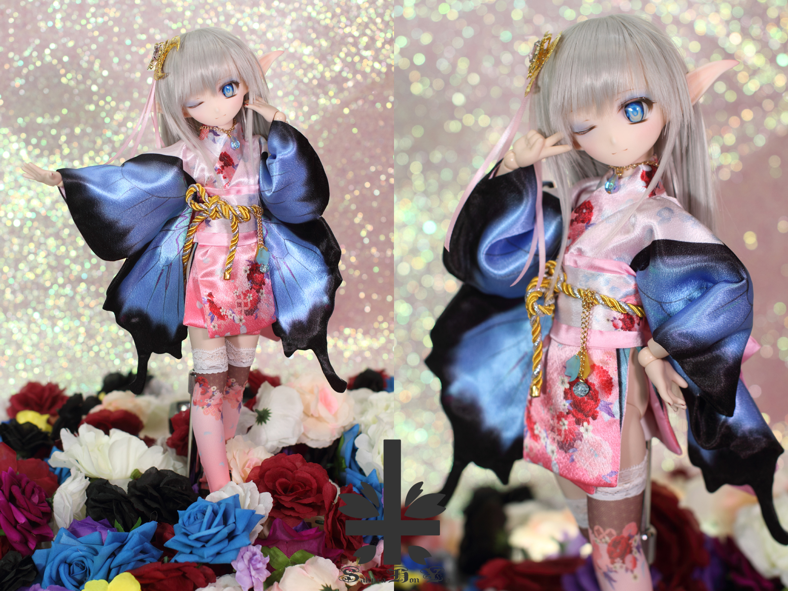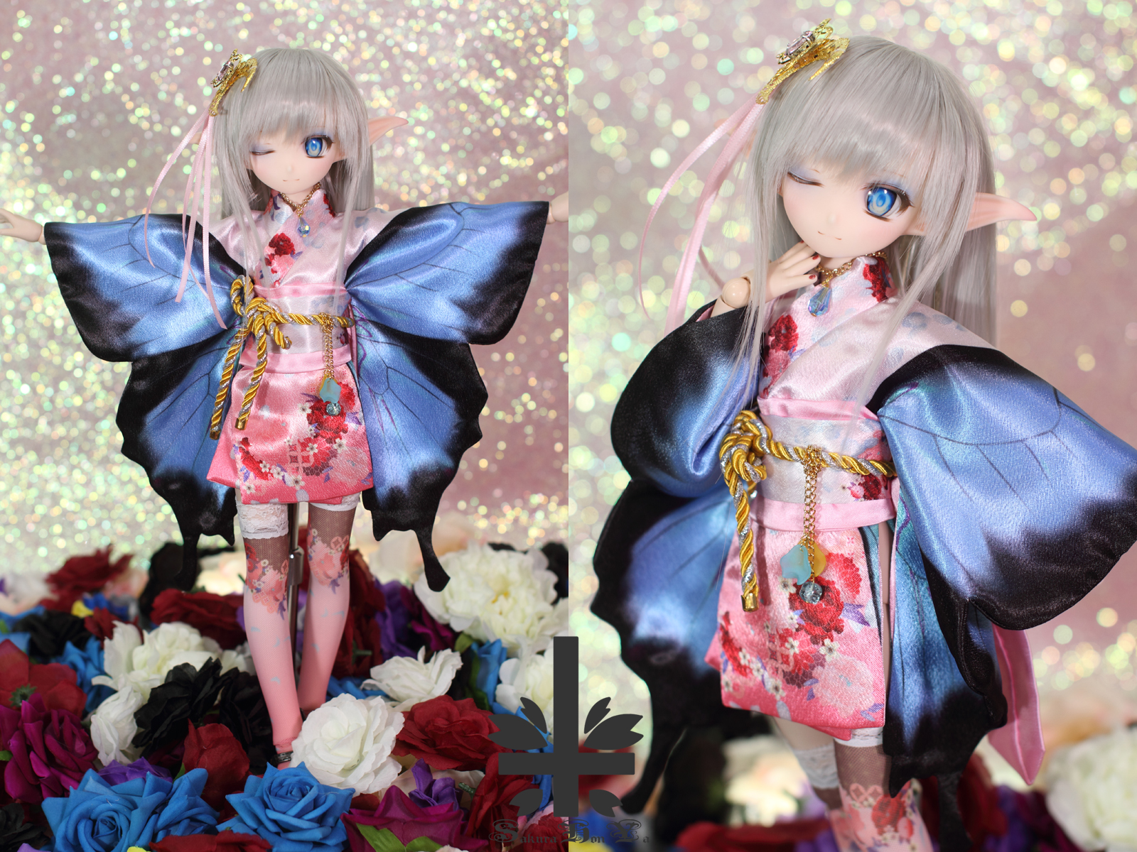 | * 商品説明 * ご覧頂き ありがとうございます。 「桜本屋」 華麗短い和服 《香花玉蝶。空》 ミニドルフィードリーム MDD-S/M/L胸 どちらにも着せ付けていただけます。 セット内容: