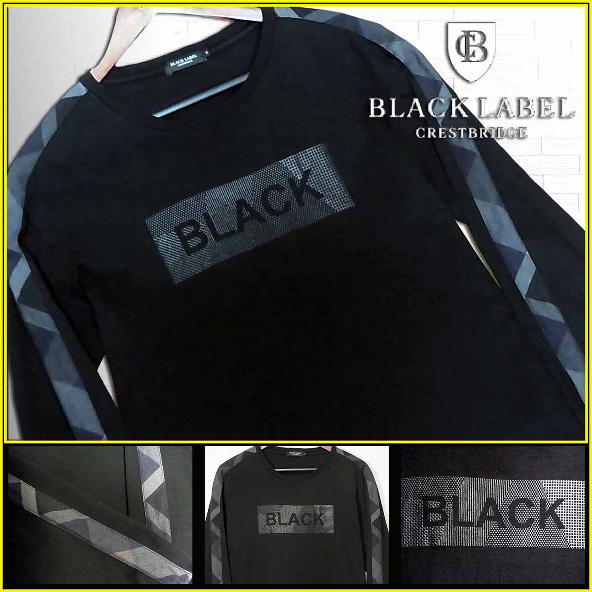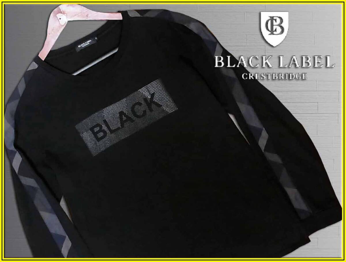 美品!ショルダーCBチェック×BIGブランドロゴ 長袖 カットソー サイズM▼ブラックレーベルクレストブリッジ CRESTBRIDGE バーバリー