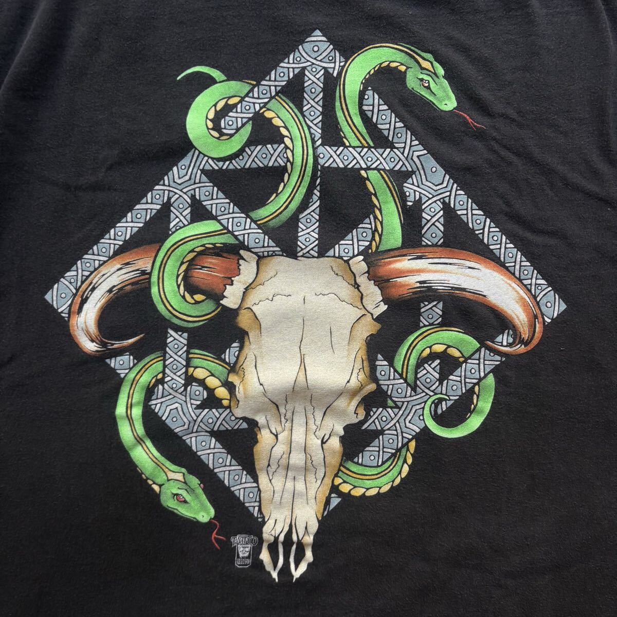 フロントには羊の頭蓋骨、蛇、そして五芒星を思わせる記号で構成されたデザインが、悪魔崇拝的要素を感じさせる、雑誌らしいラディカルな一枚。