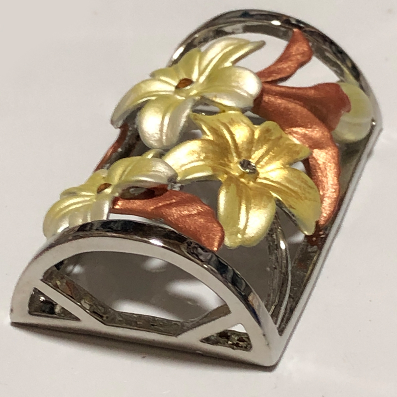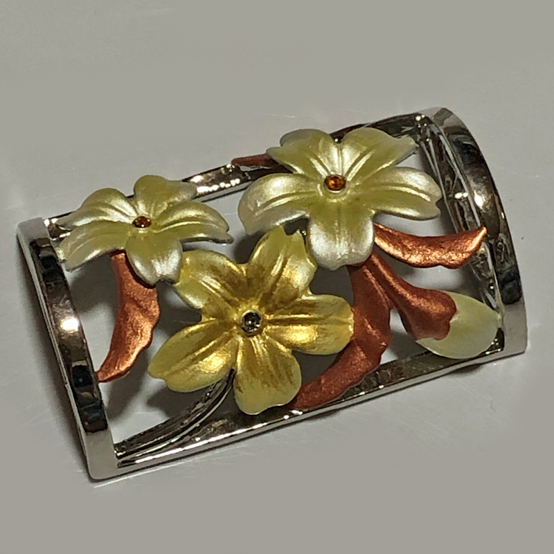 山口美術織物謹製 竹笹花丸文 スワロフスキー 帯留 帯留め 帯飾り 和装小物