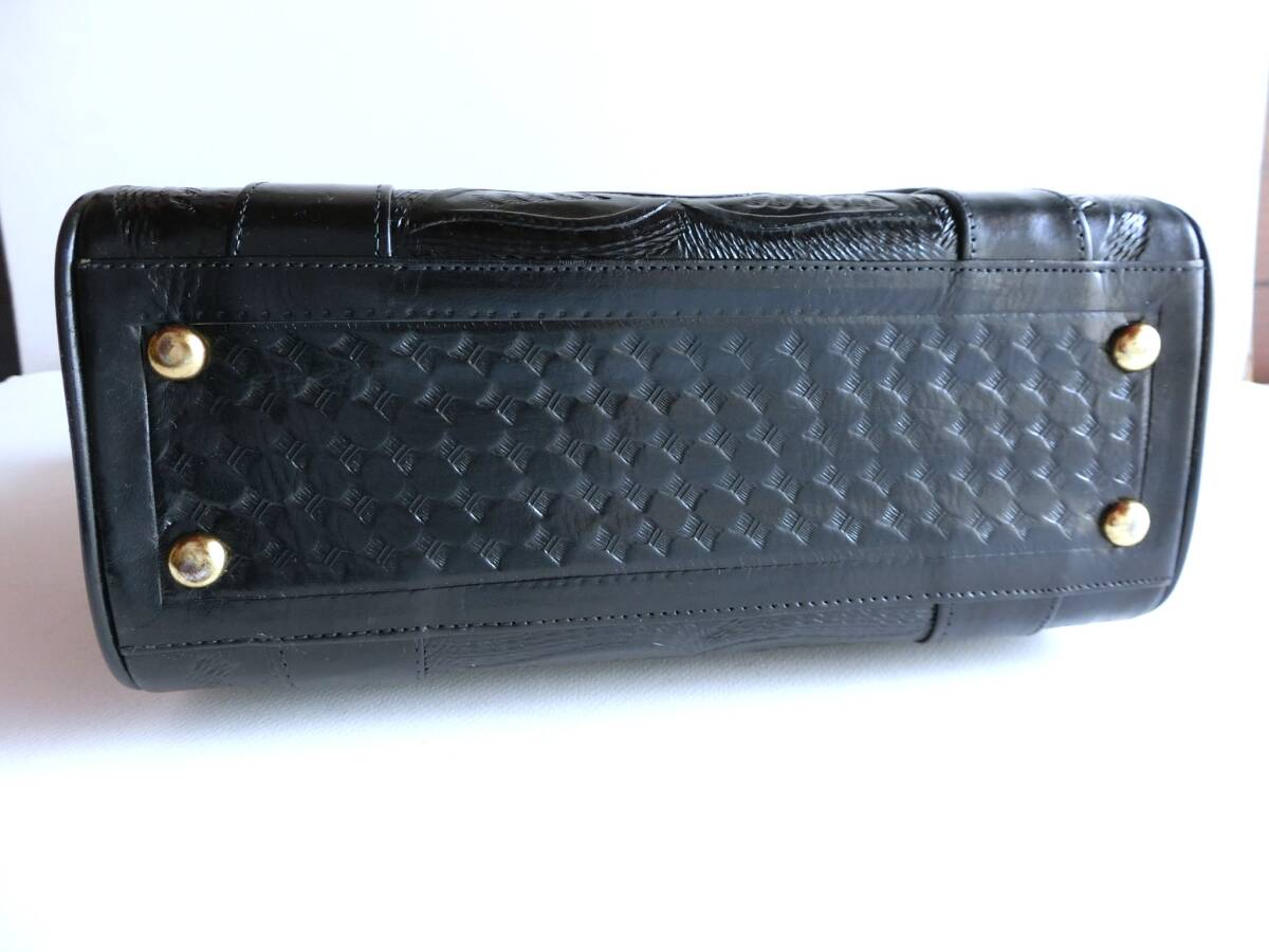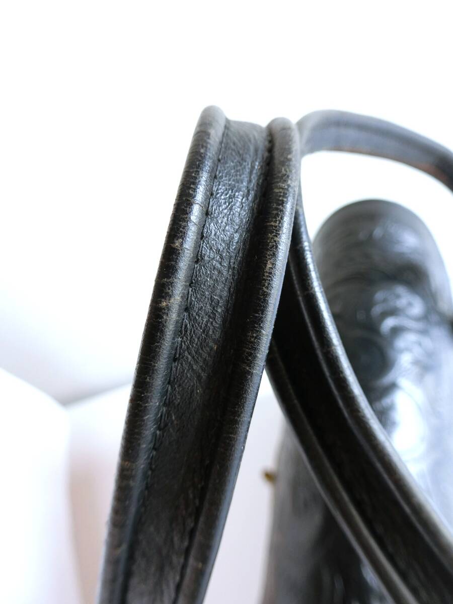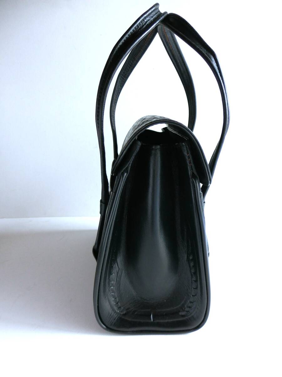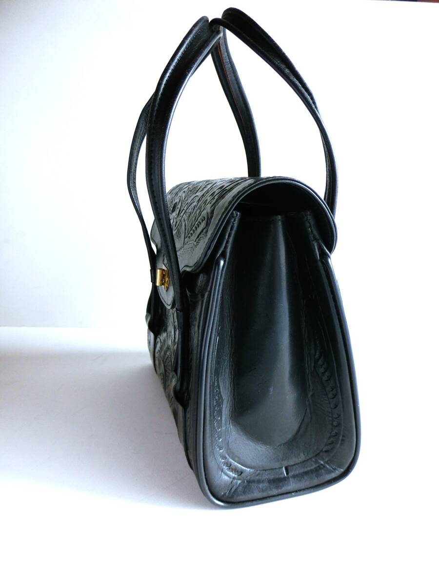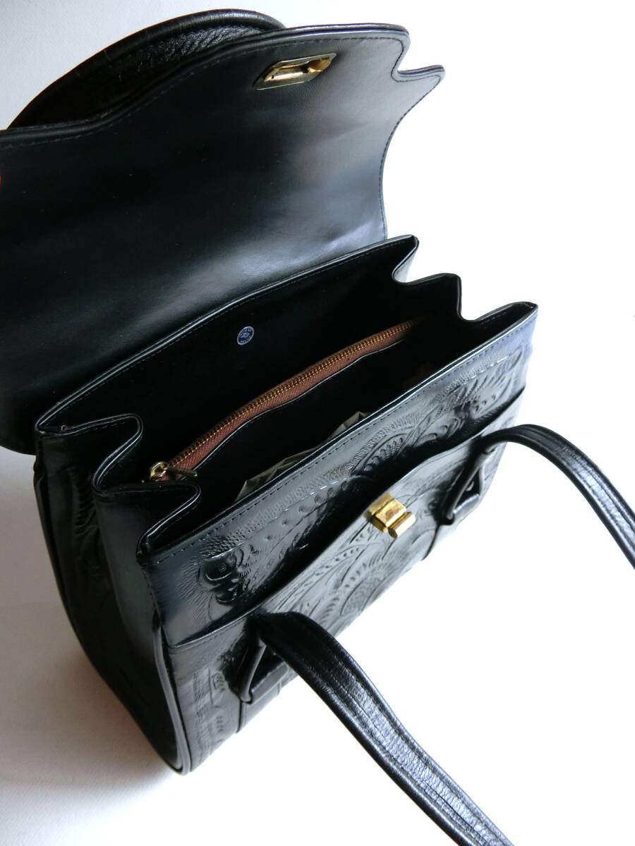 ヴィンテージ カービングレザー 本革レザー ハンド バッグ ブラック メキシコ製 型押し 黒 レトロ フォークロア 男女兼