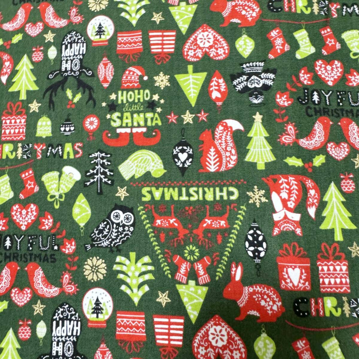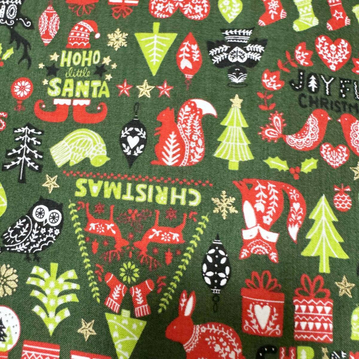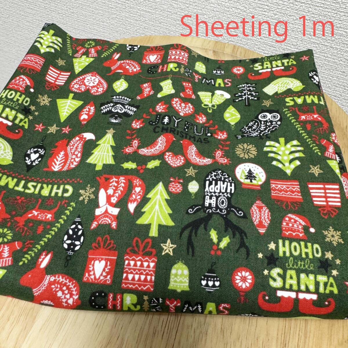 【数量限定】おしゃれクリスマス柄シーチング生地グリーン緑1m