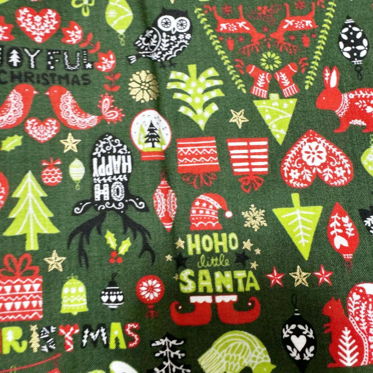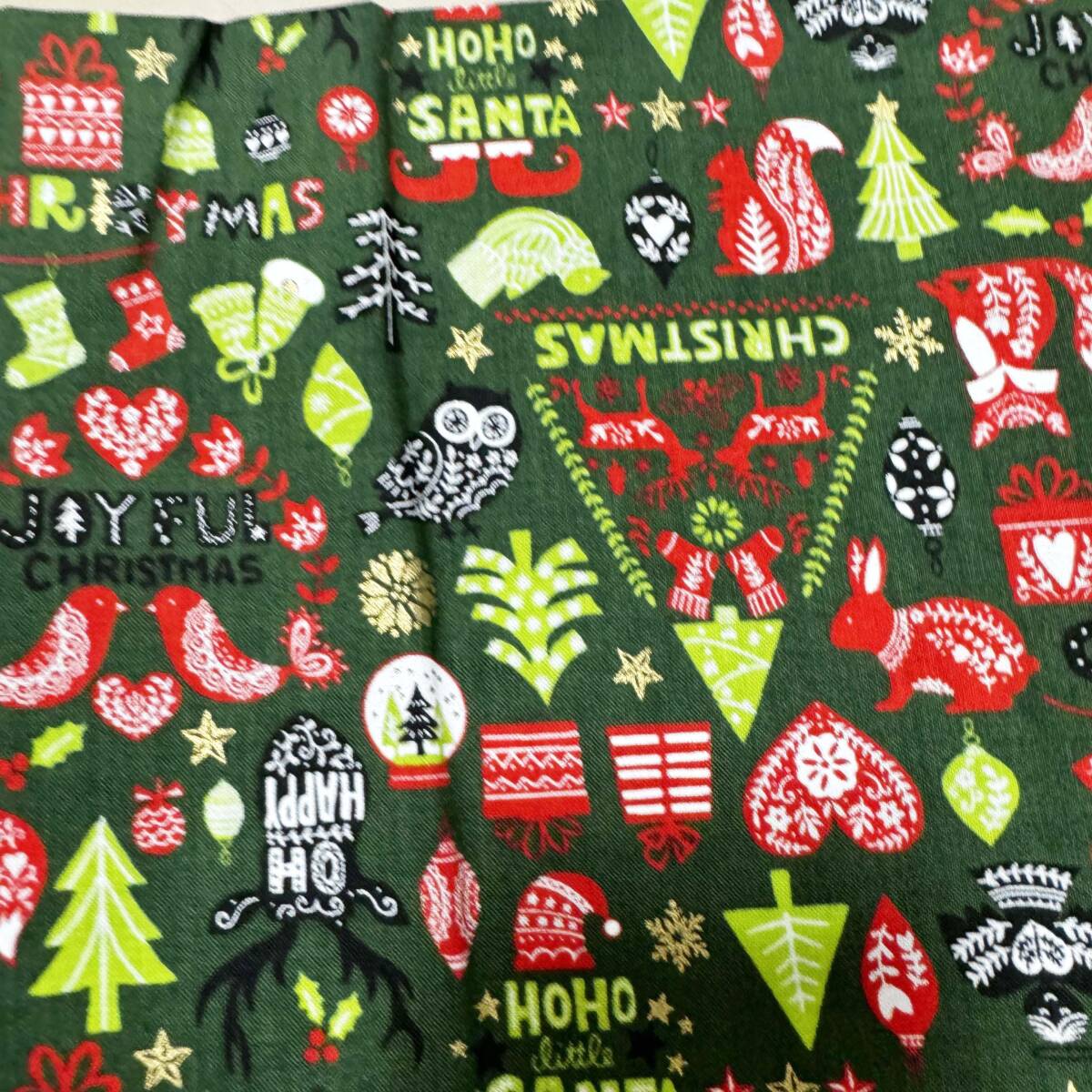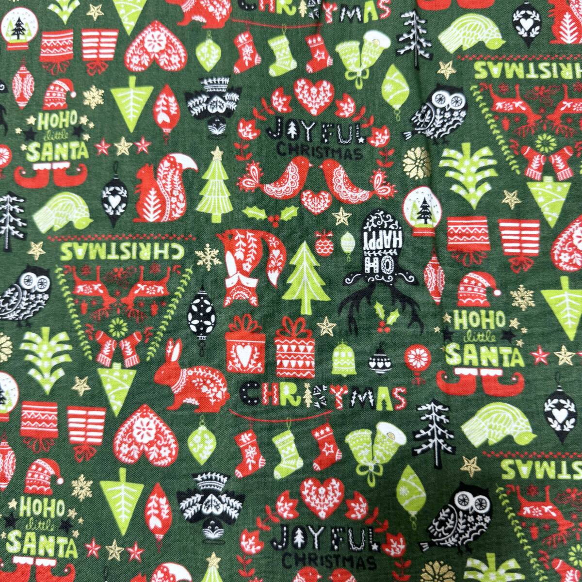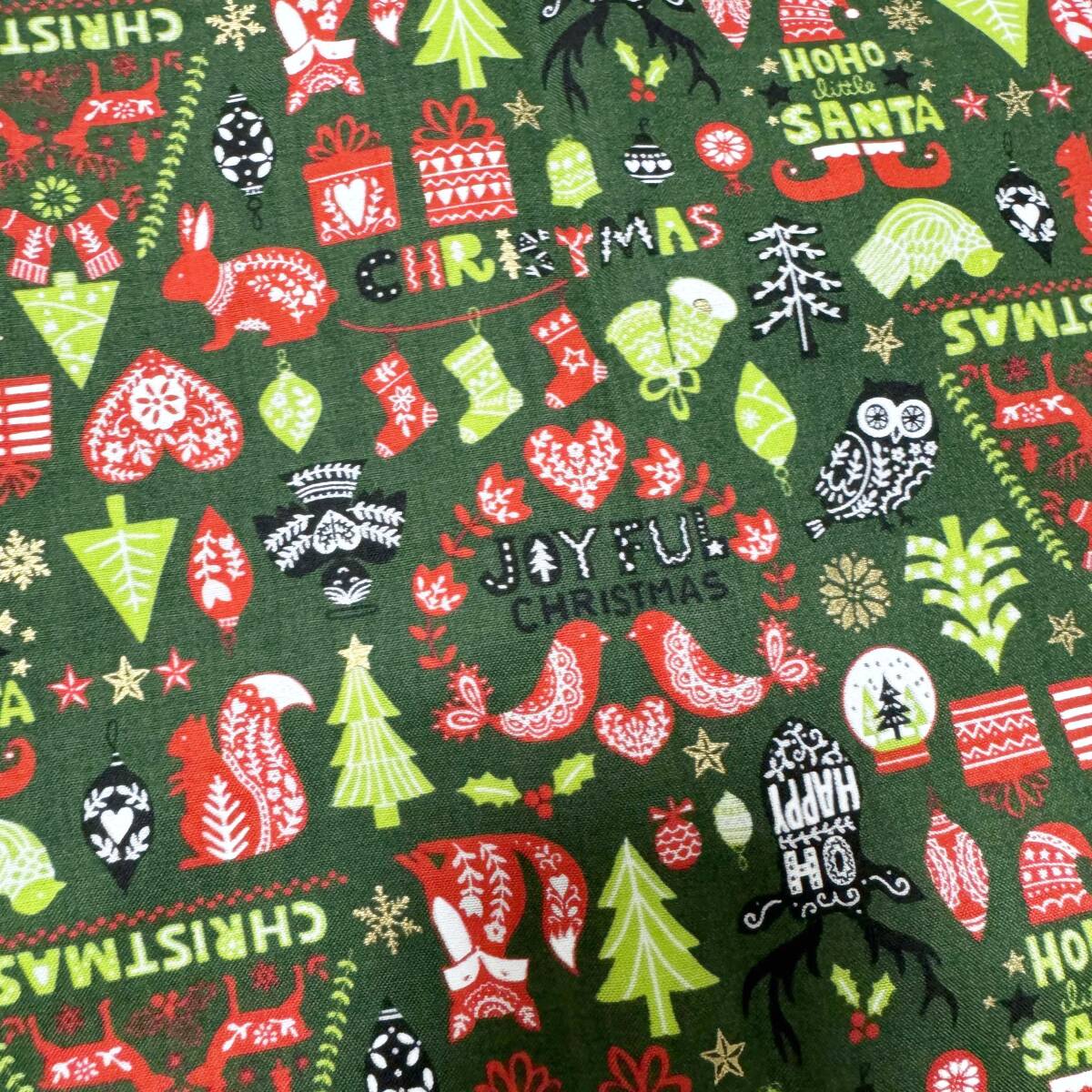 【数量限定】おしゃれクリスマス柄シーチング生地グリーン緑1m