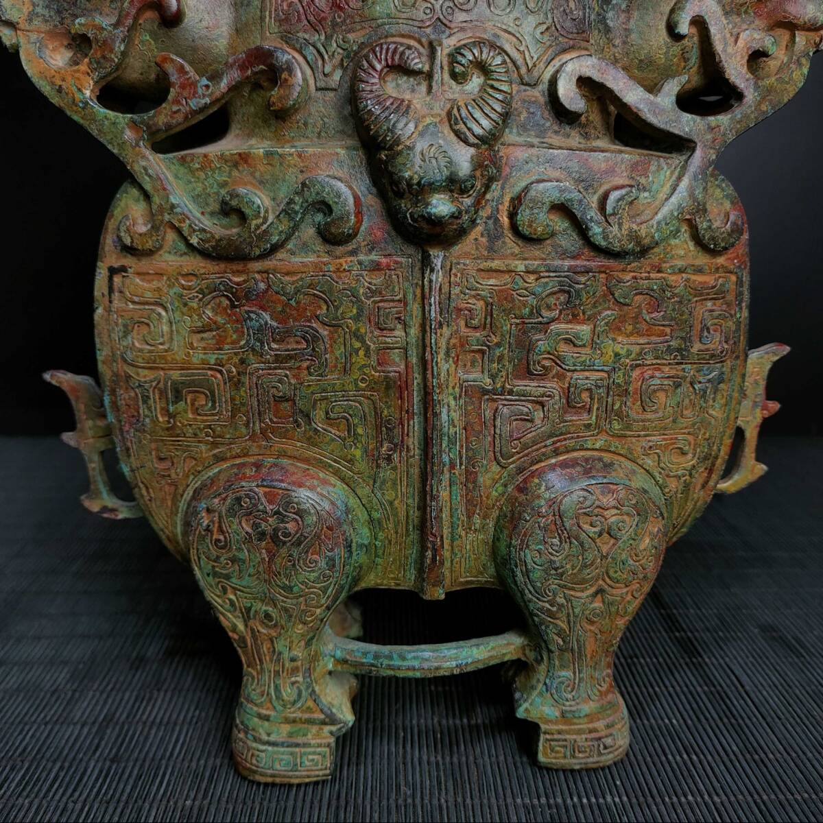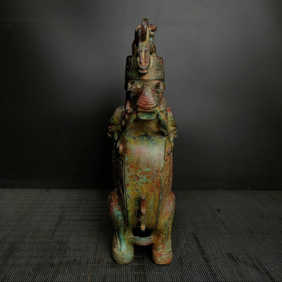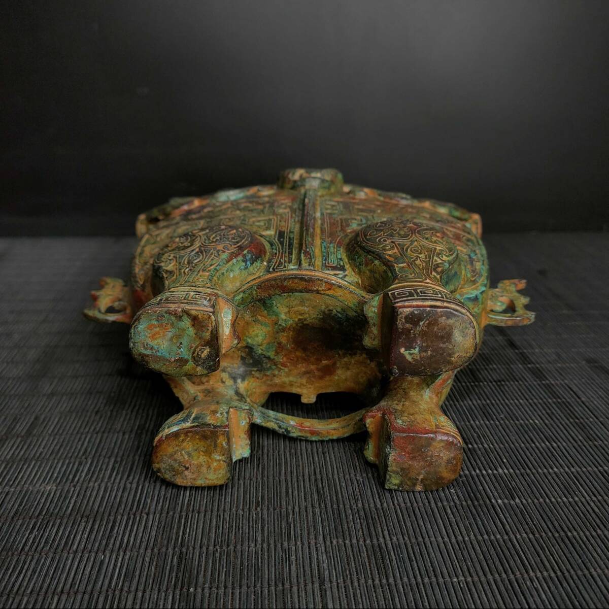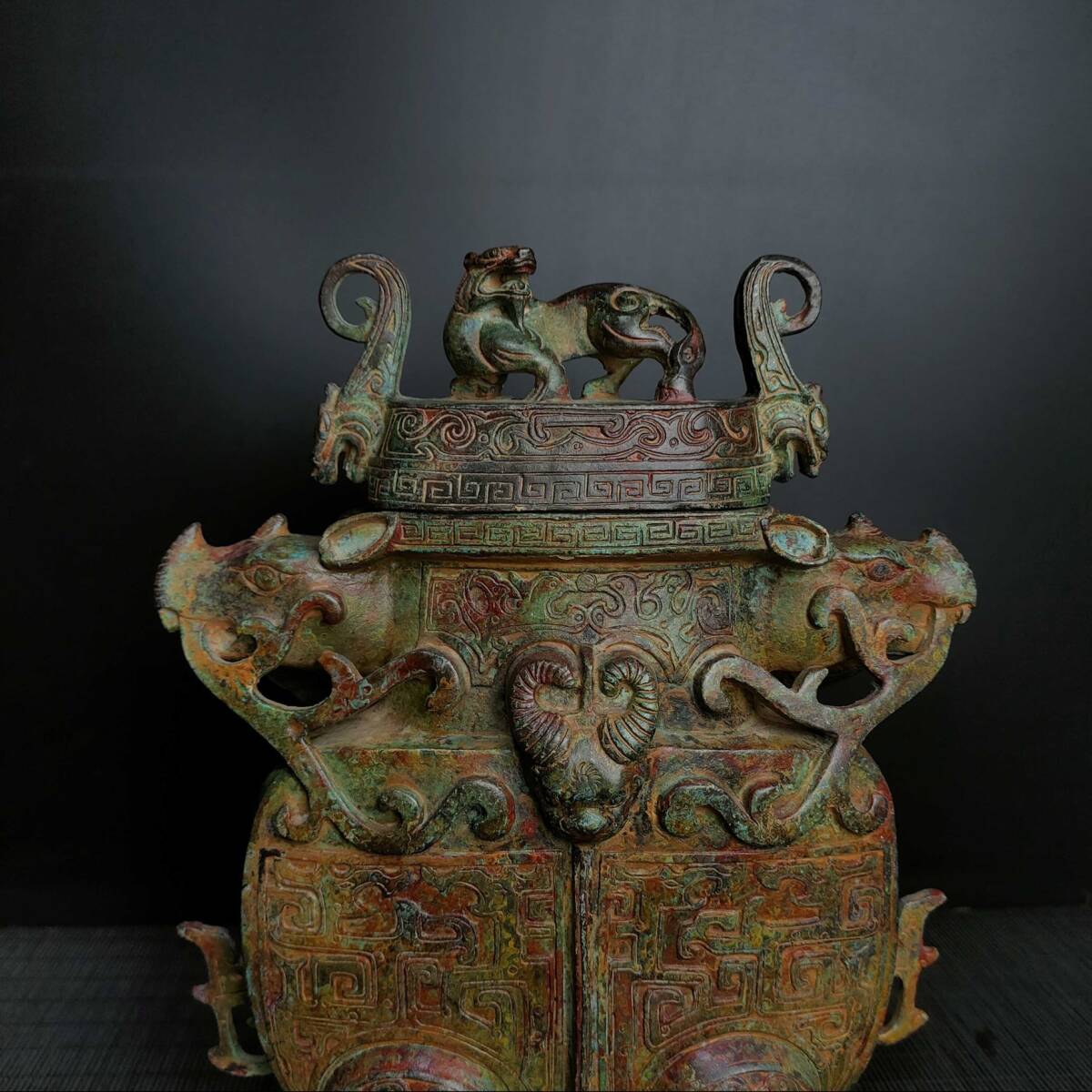 【超珍館蔵】戦 青銅製 牛耳扁瓶 青銅器 置物 賞物 古賞物 古董品 古美術品 時代物 旧家蔵出 稀少珍蔵品