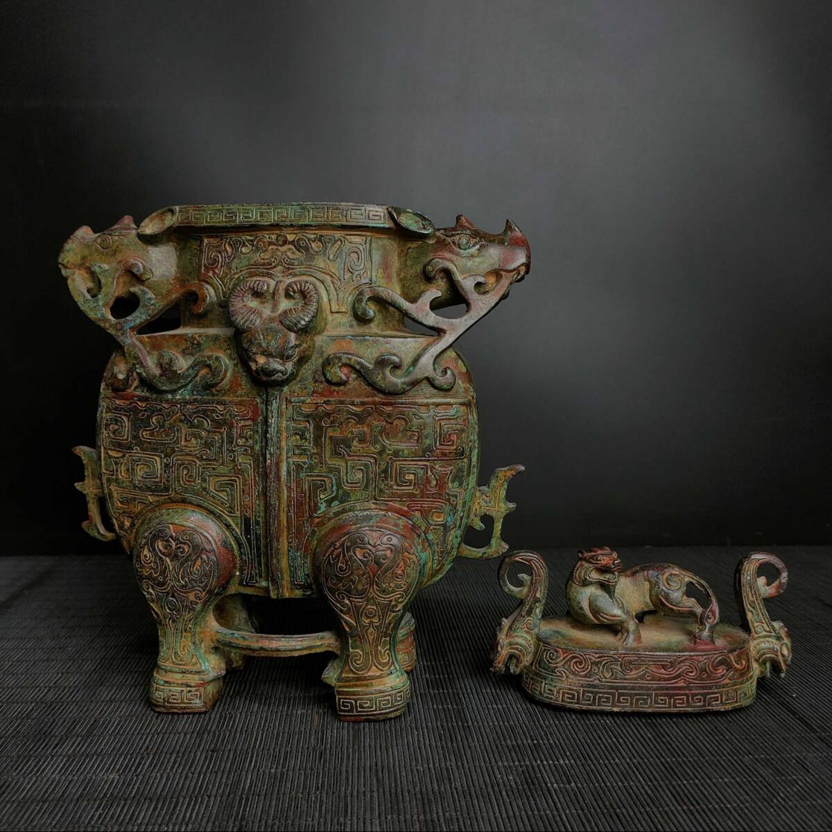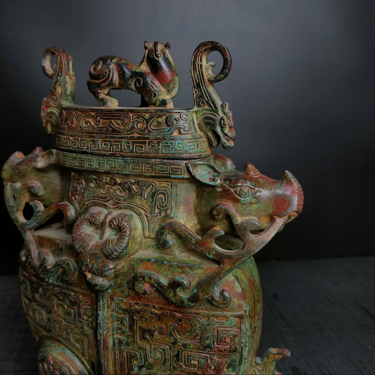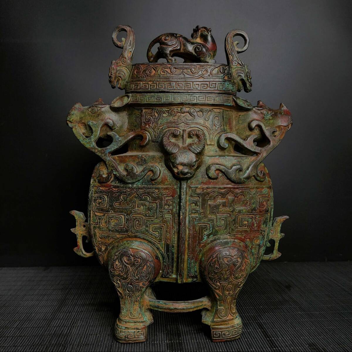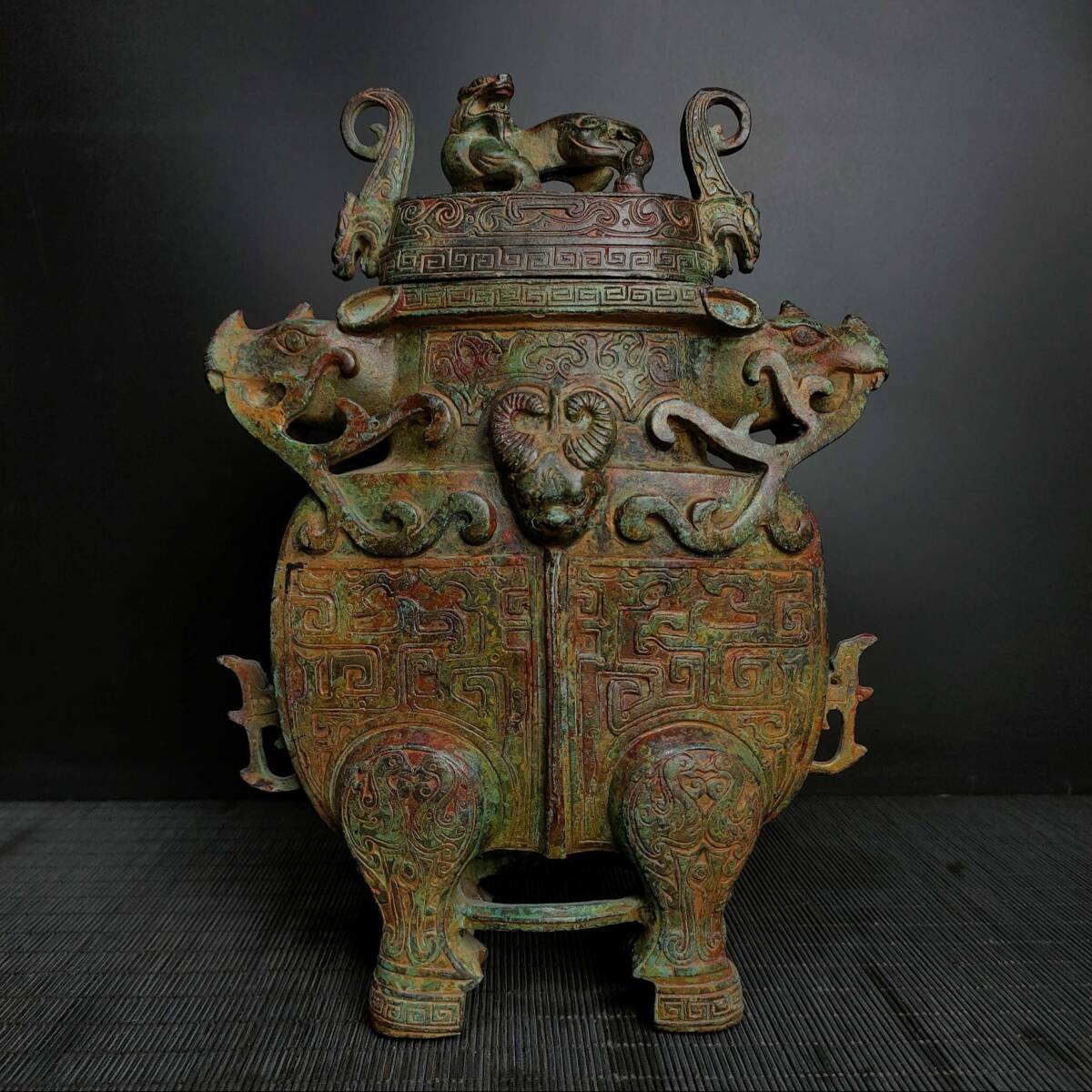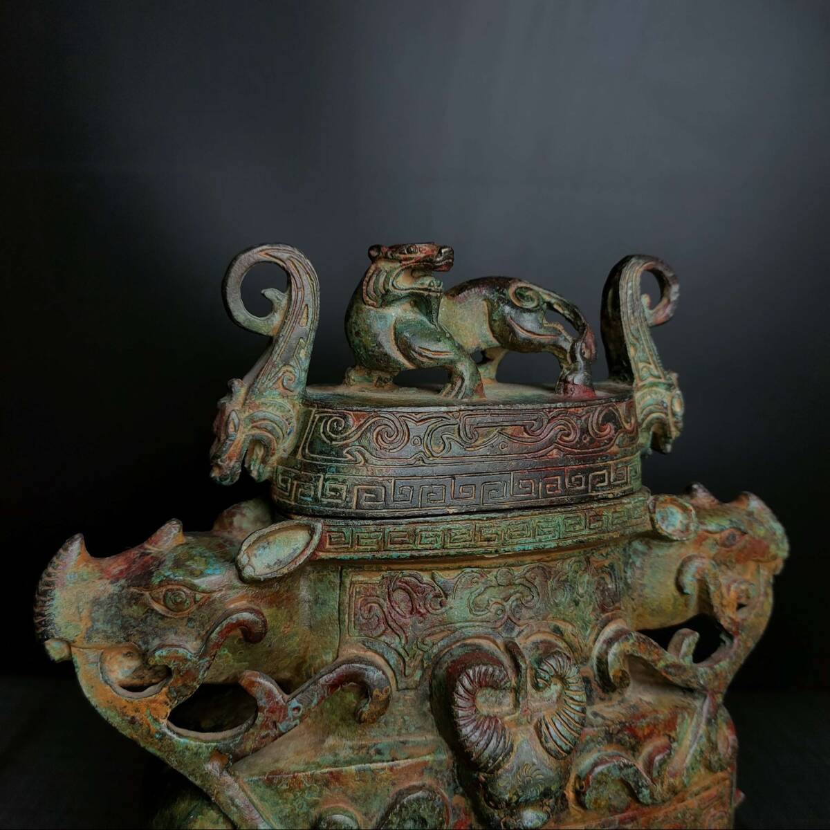 【超珍館蔵】戦 青銅製 牛耳扁瓶 青銅器 置物 賞物 古賞物 古董品 古美術品 時代物 旧家蔵出 稀少珍蔵品