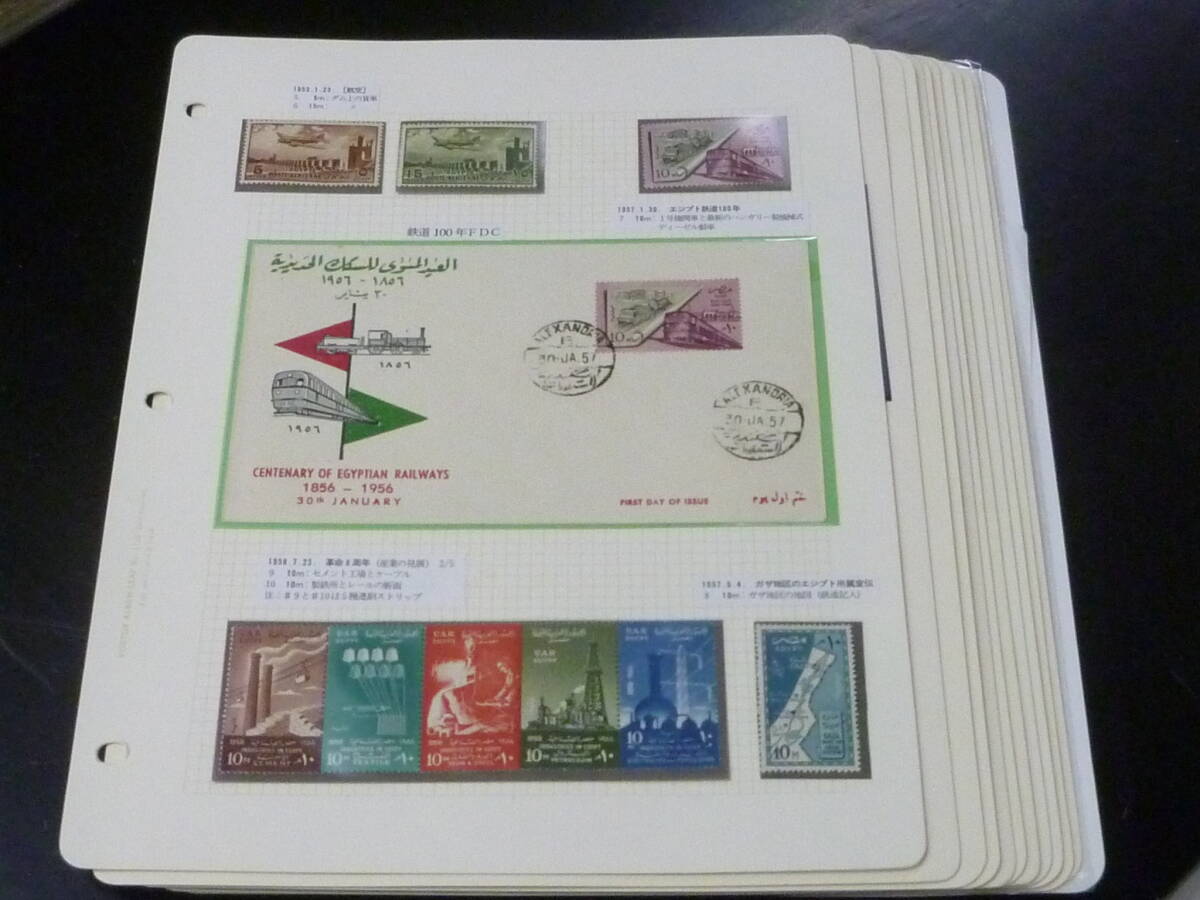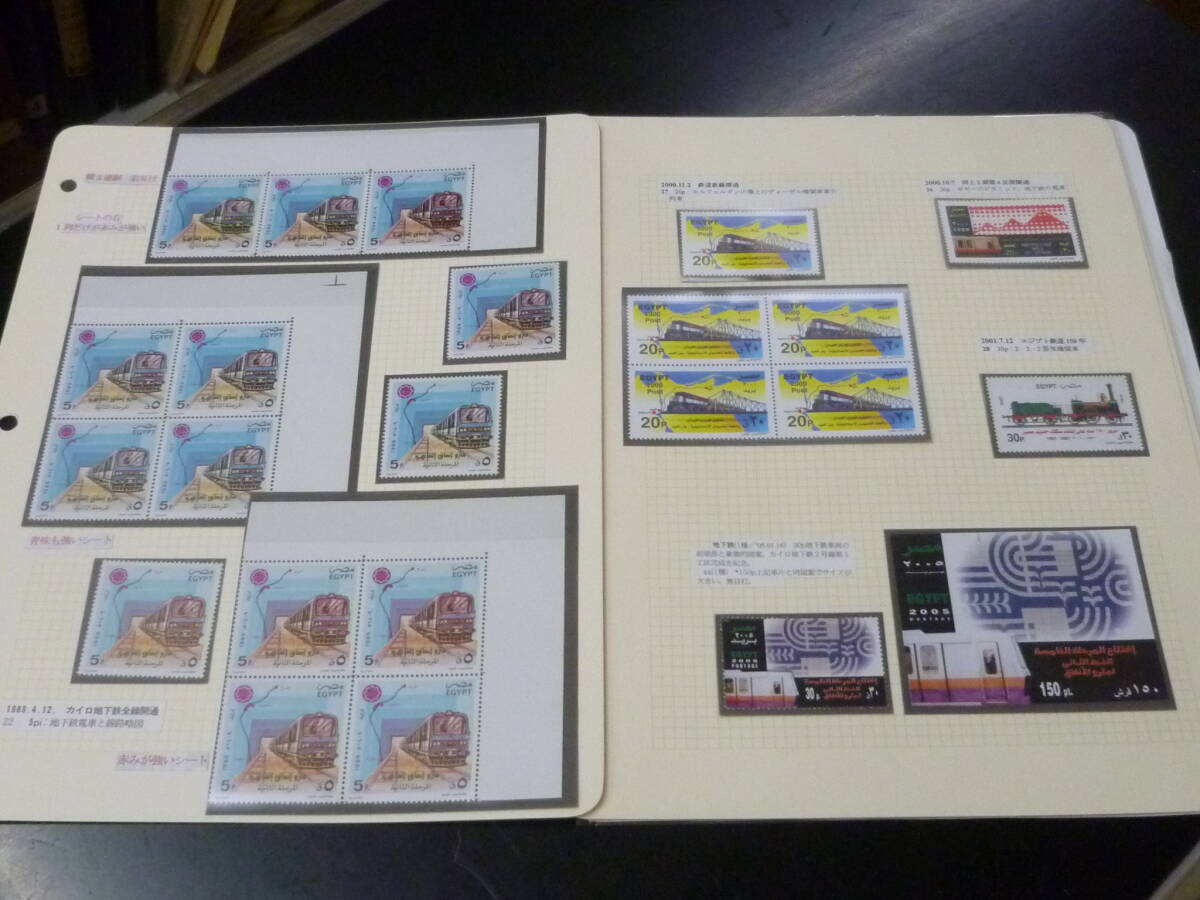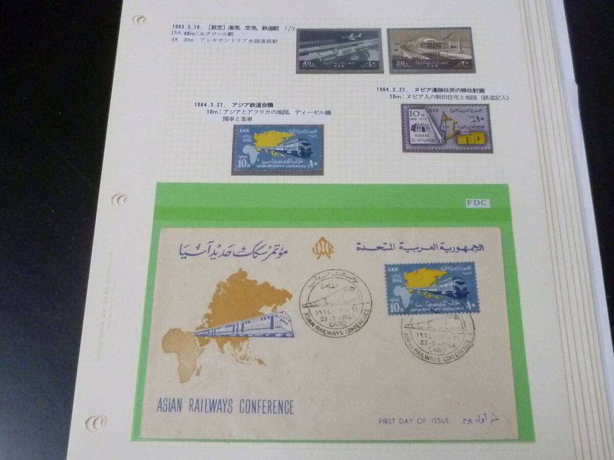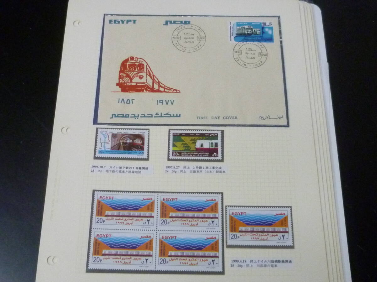 鉄道№20-4 エジプト・他切手 2ヵ国 1917-2005年 各種 鉄道関連 計93枚+小型43種+FDC6通 11リーフ 未使用NH~LH・VF ※説明欄必読