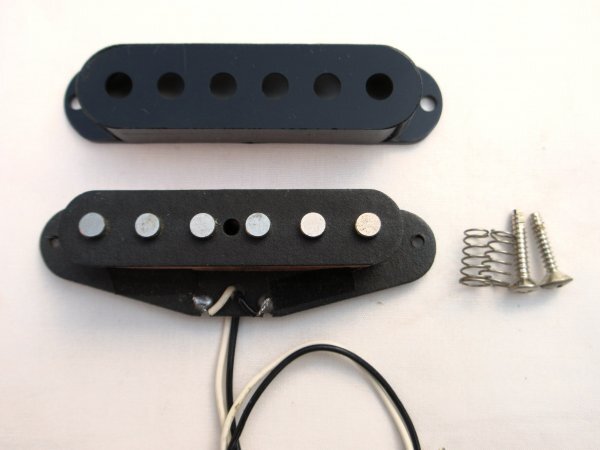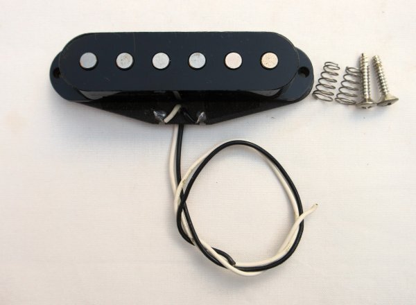 1つ穴黒ボビン、アルニコマグネット、フラットポールピースが特徴のビンテージ系PUです。