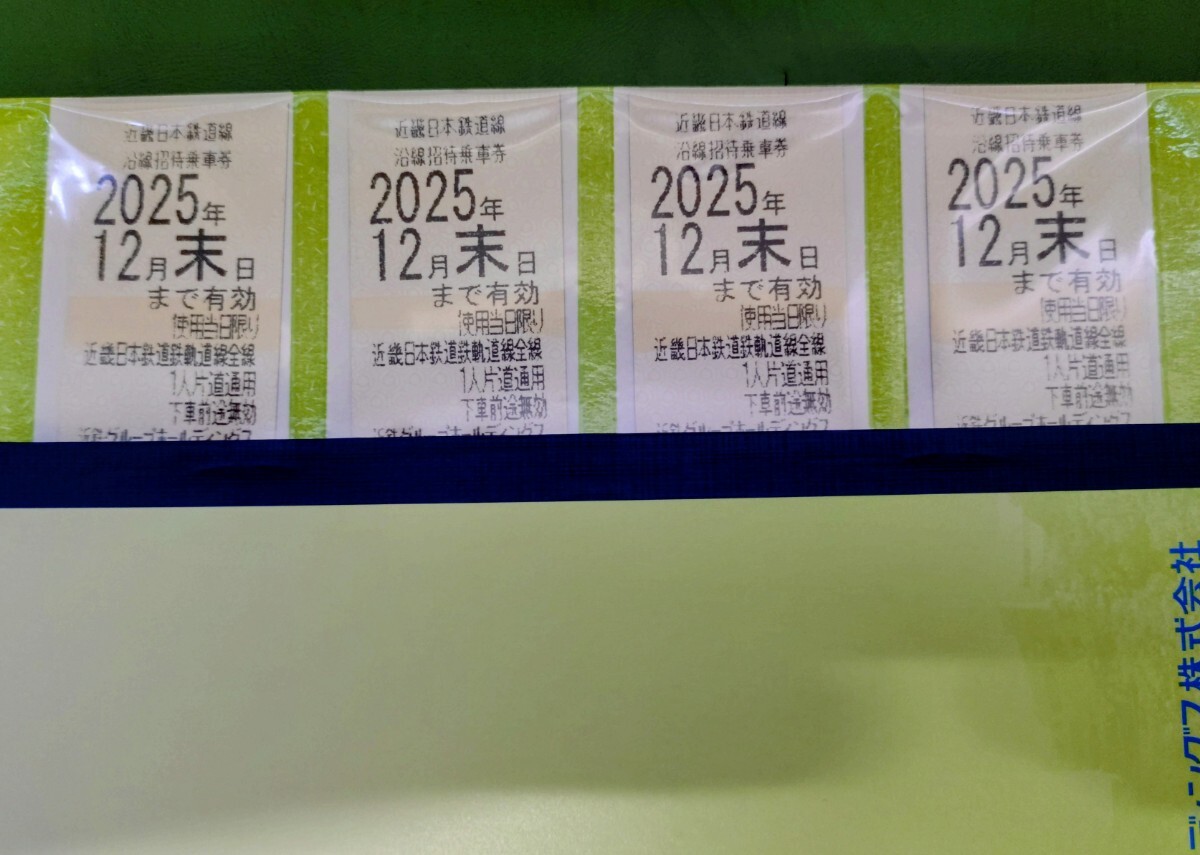 近鉄株主優待乗車券です。今年の12月末まで有効です。