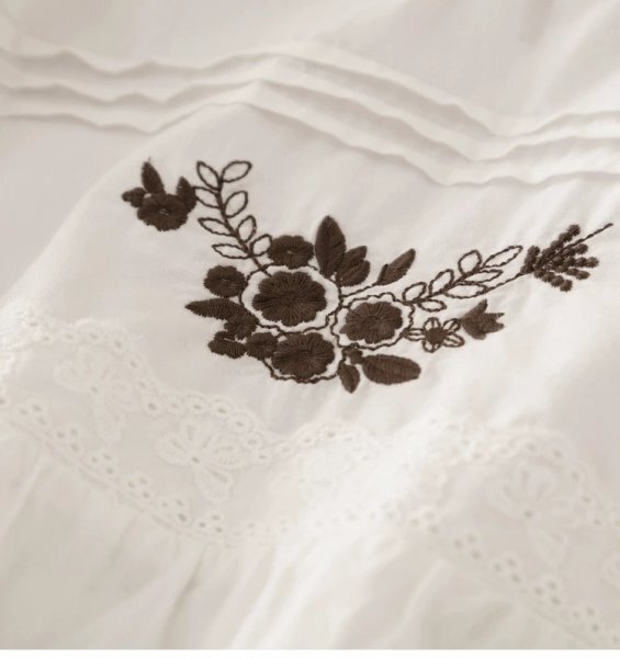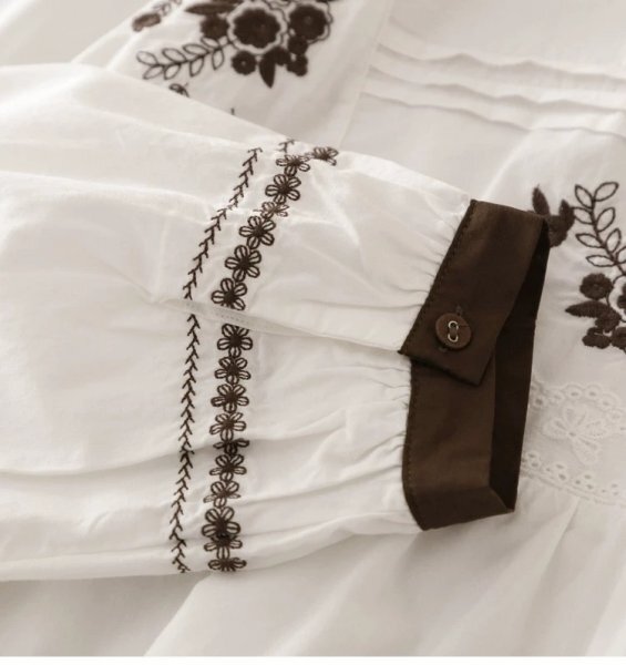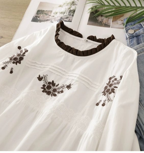xx 0704 刺花柄 チュニック ワイシャツ トップス 綿100% ゆったり オシャレ フリーサイズ ナチュラル 白色
