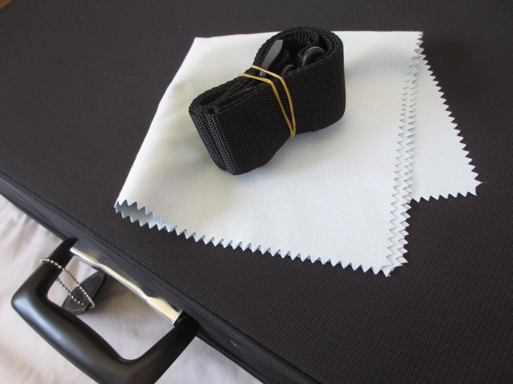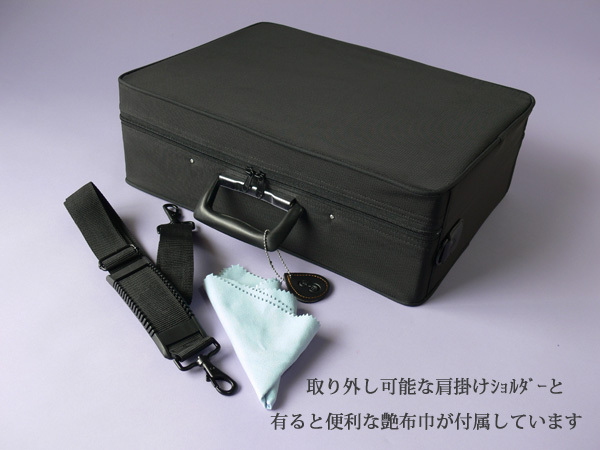 取り外し可能な肩掛けショルダーと便利な艶布巾が付属しています。