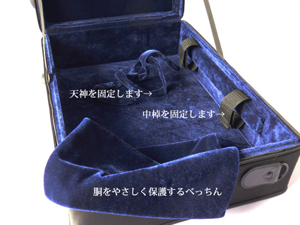 内部の布は通気性が高く三味線にもやさしいべっちんを使用しています。