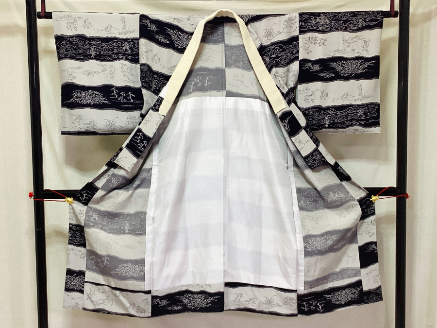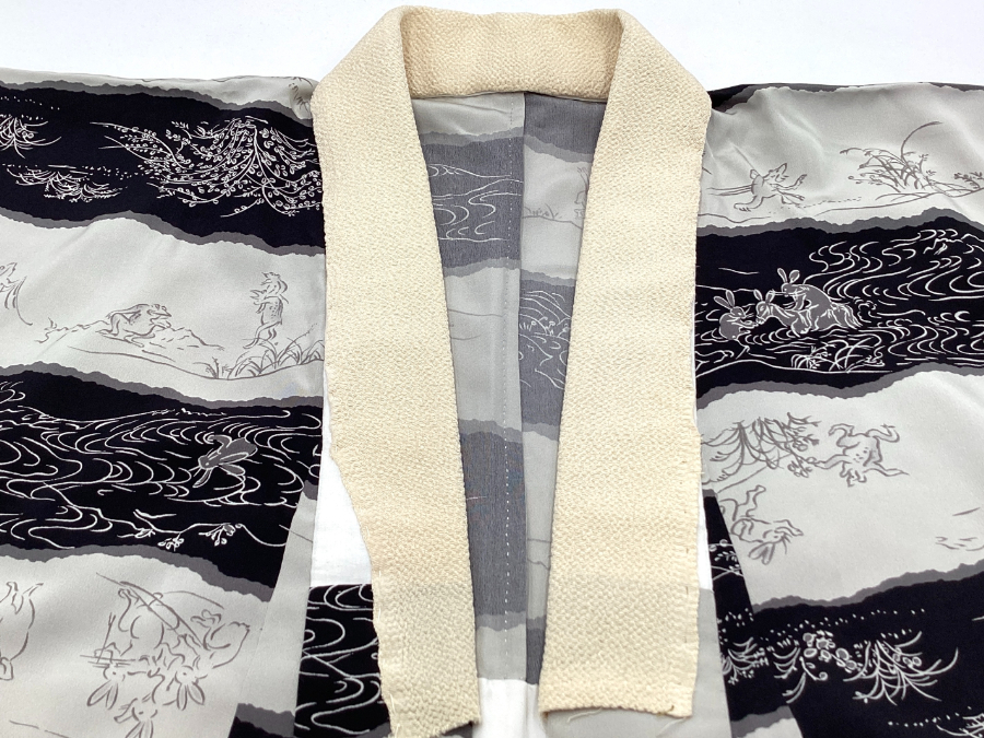 コメント | 中古の正絹お仕立て上がり長襦袢です。 鳥獣戯画友禅加工居敷当て仕立ての品物です。 しつけ付きバチ衿ちりめん半衿付の身幅ゆったり仕立てです。 使用感少ない未使用に近い綺麗な品物です。 |