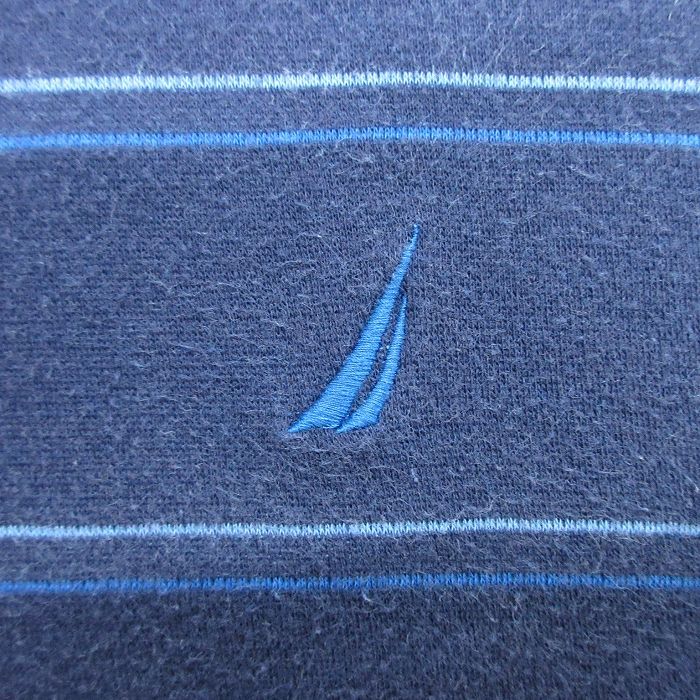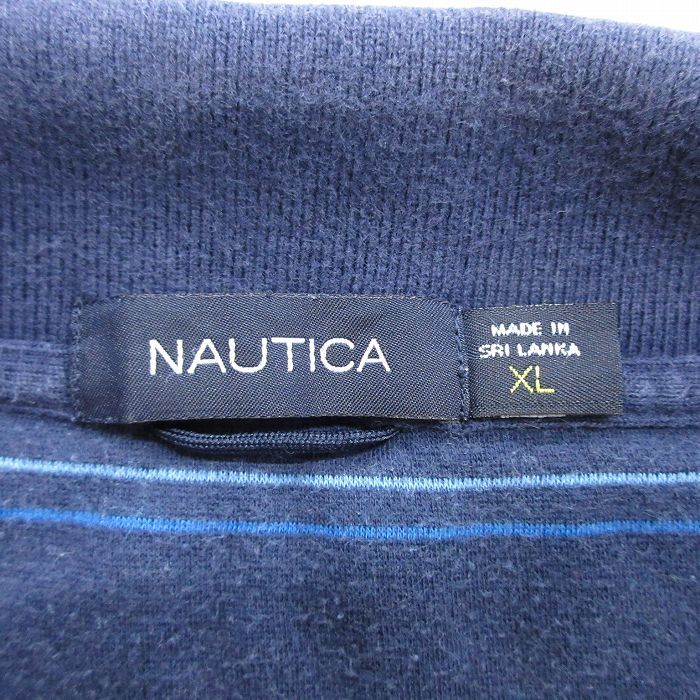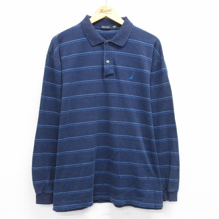 【商品名】 XL★古着 ノーティカ 長袖 ブランド ポロ シャツ メンズ ワンポイントロゴ コットン 紺他 ボーダー
