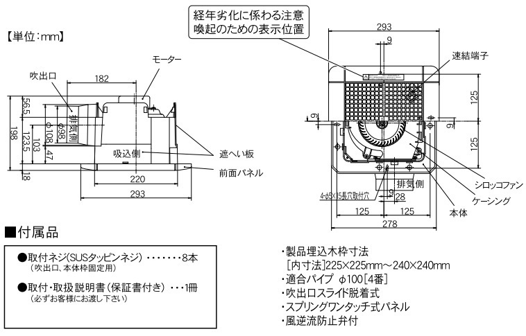 日本電興 天井換気扇 NTV-151SN 浴室換気扇 225mm~240mm/Φ100mm ダクト換気扇 天井用 ダクト用