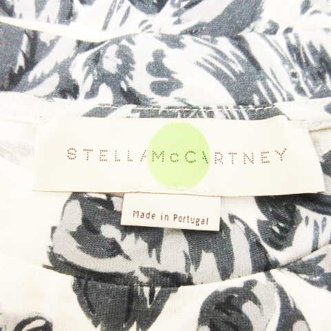 ステラマッカートニー STELLA McCARTNEY 半袖Tシャツ クルーネック ボーダー プリント 花柄 総柄 38 M 白 ホワイト 紺 ネイビー /AH4