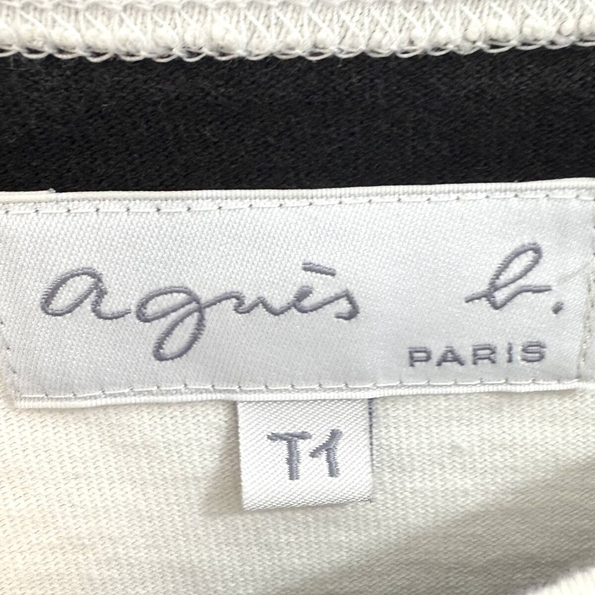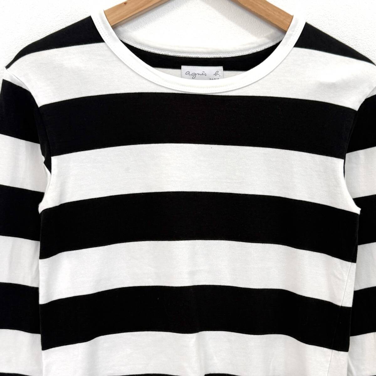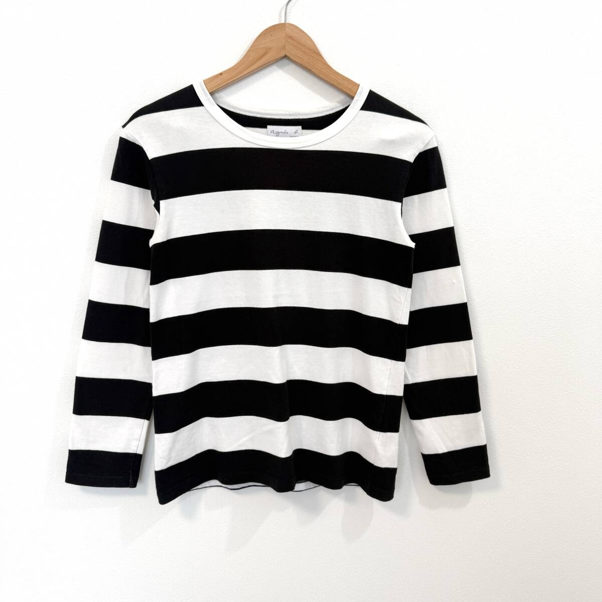 f3082ii agnes b.(アニエスベー)サイズT1(S位) ボーダーカットソー クルーネック 長袖 ブラック×ホワイト レディース 日本製