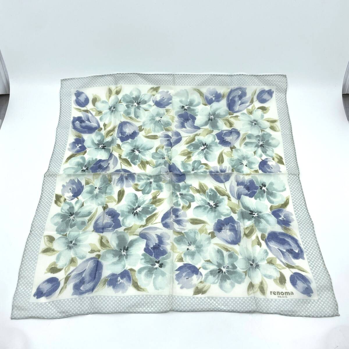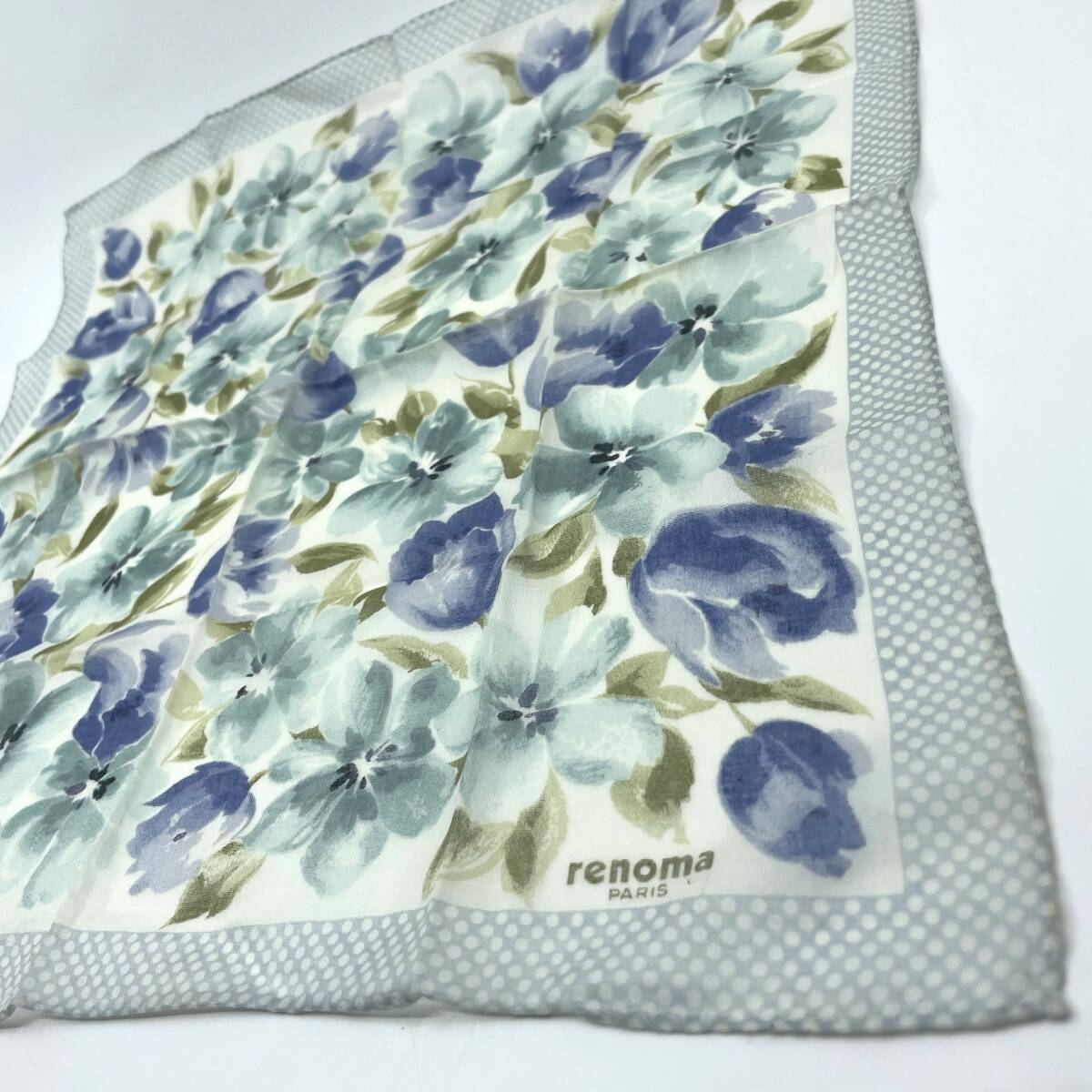 renoma レノマ ハンカチ バンダナ ブルー系 花柄 フラワー チューリップ ドット